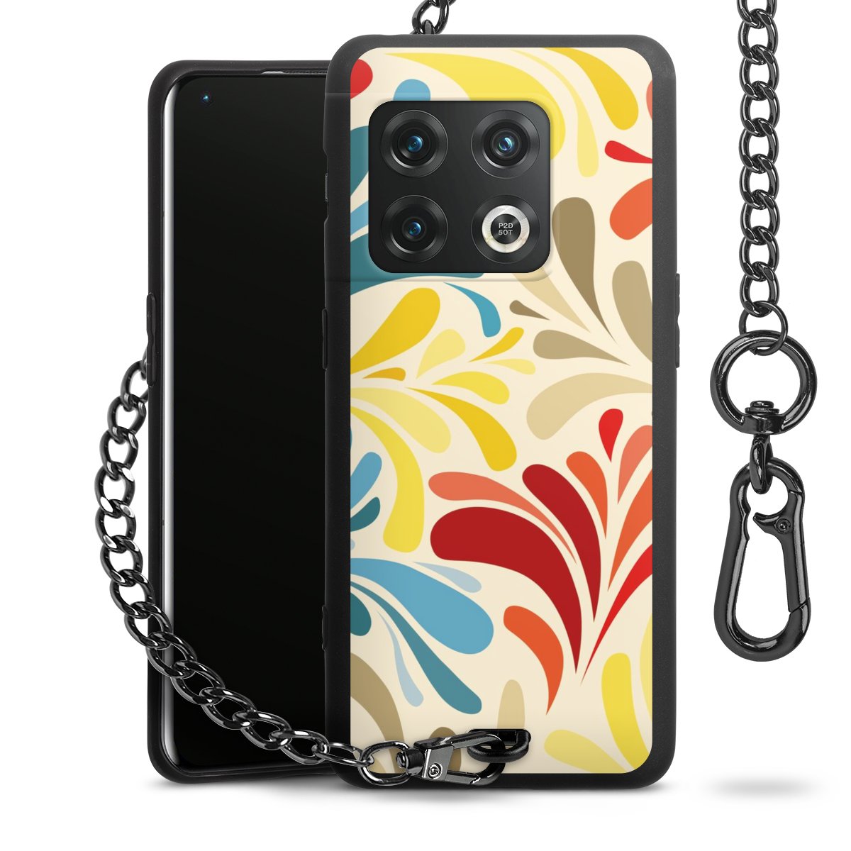 - Mattschwarze Handyhülle mit Metallkette