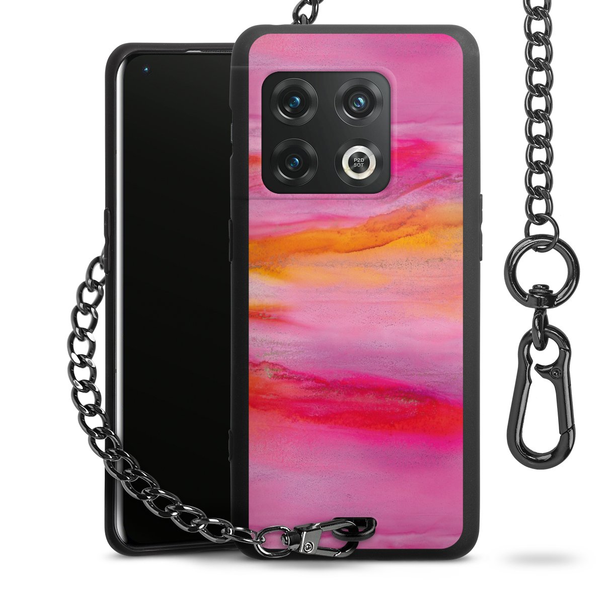 • Mattschwarze Handyhülle mit Metallkette