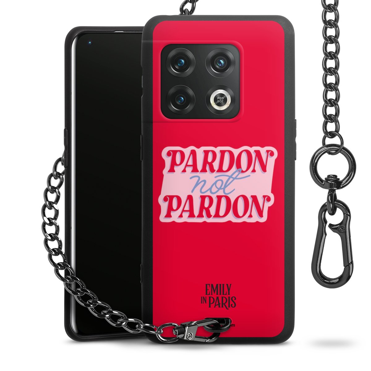 Die Handyhülle verfügt über eine mittig am unteren Rand platzierte Öse, an der die Metallkette stabil befestigt ist. Bestelle die Hülle einfach für Dein Smartphone-Modell, dann passt sie wie angegossen und Du brauchst sie bloß einmal anzudrücken. Handy in die Tasche, Karabiner an den Hosenbund – schon kann die Party starten.