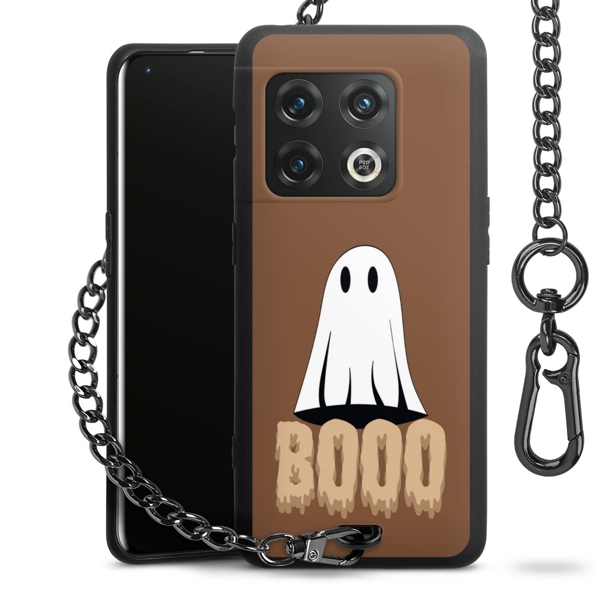 - Mattschwarze Handyhülle mit Metallkette