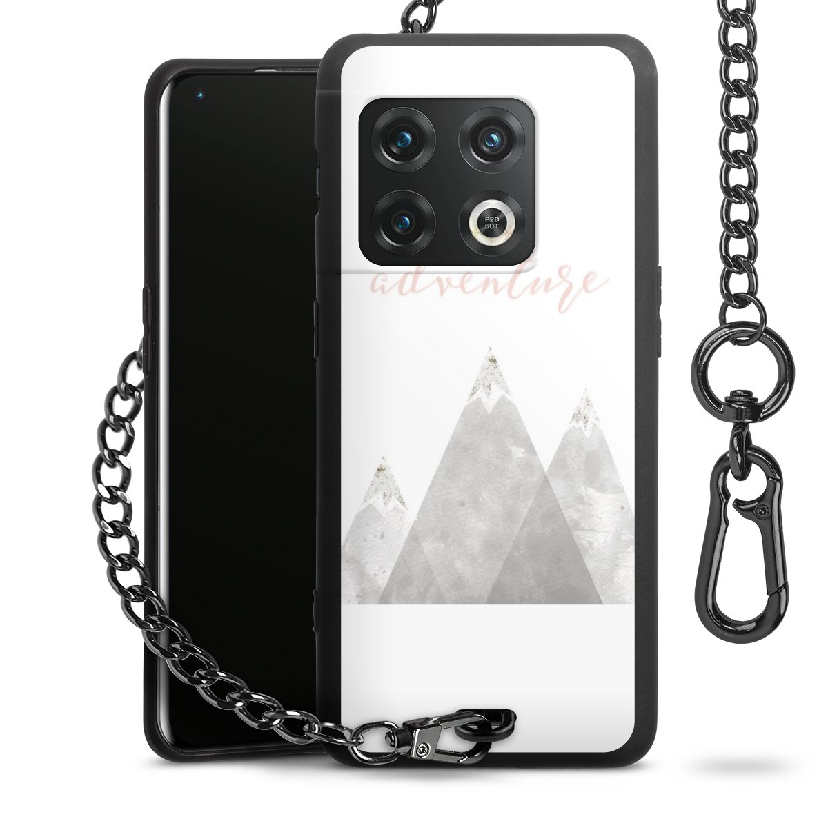 • Mattschwarze Handyhülle mit Metallkette