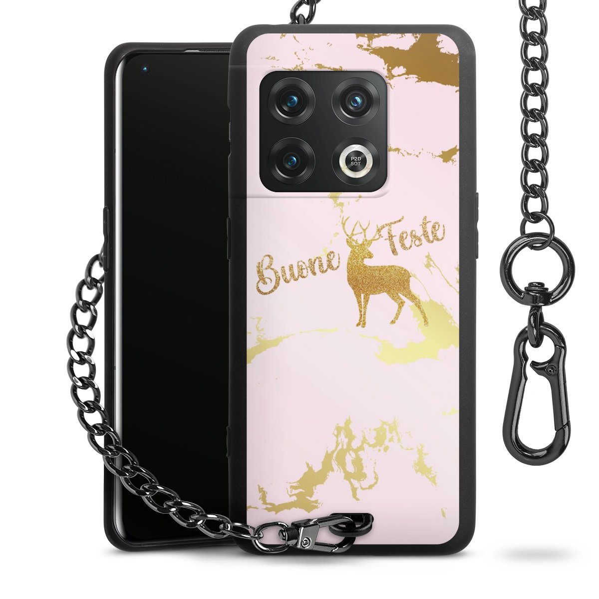 - Mattschwarze Handyhülle mit Metallkette