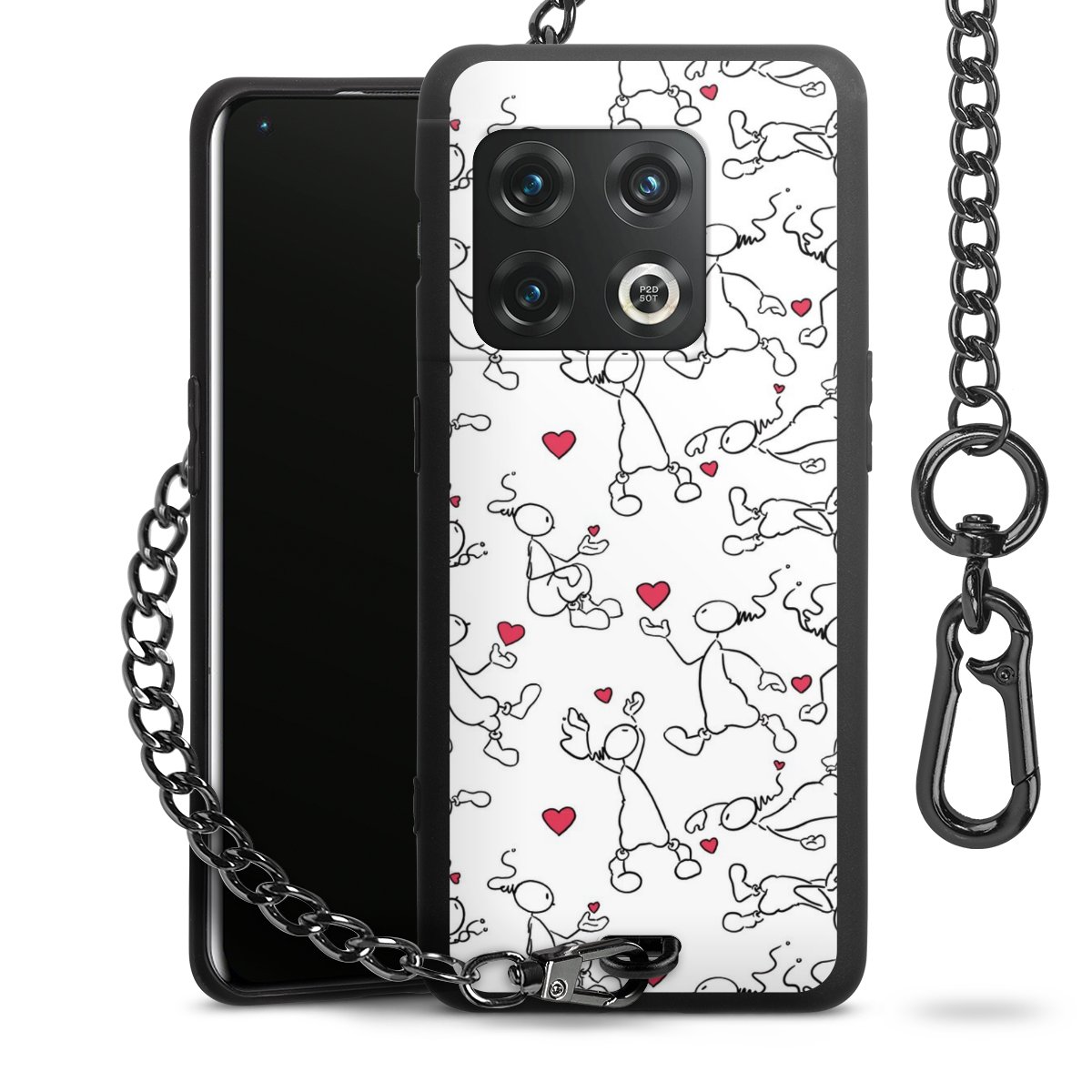 Die Handyhülle verfügt über eine mittig am unteren Rand platzierte Öse, an der die Metallkette stabil befestigt ist. Bestelle die Hülle einfach für Dein Smartphone-Modell, dann passt sie wie angegossen und Du brauchst sie bloß einmal anzudrücken. Handy in die Tasche, Karabiner an den Hosenbund – schon kann die Party starten.