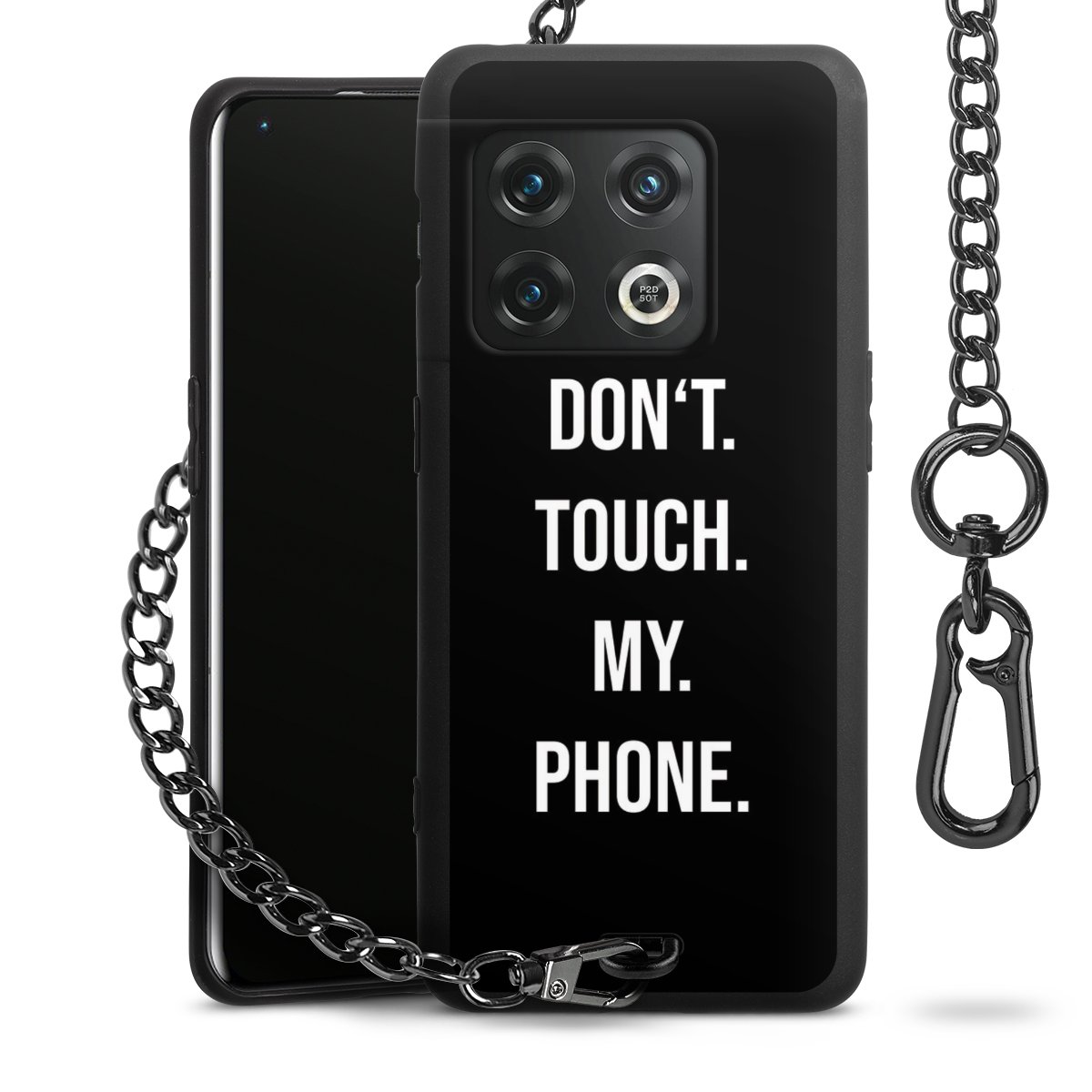- Mattschwarze Handyhülle mit Metallkette