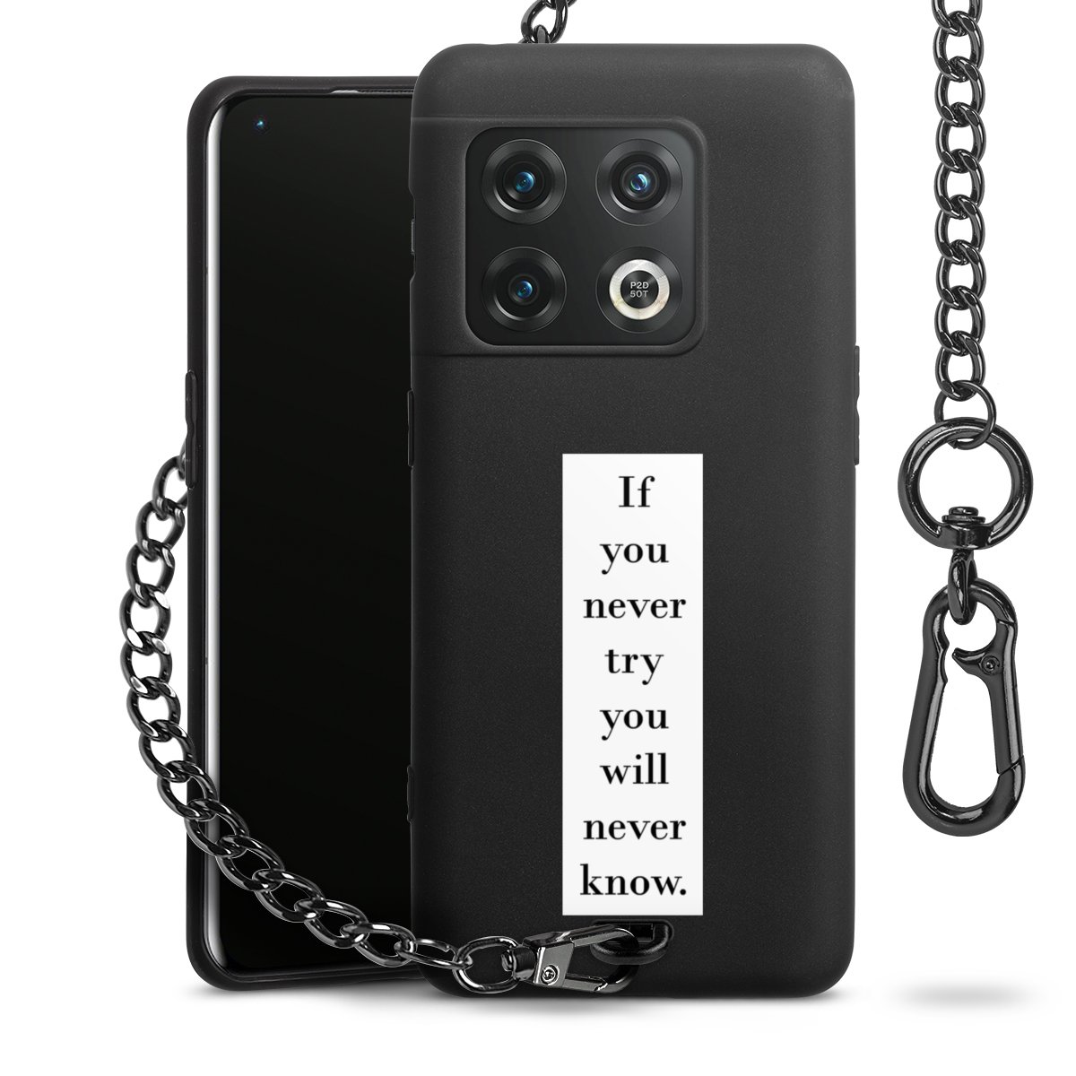 - Mattschwarze Handyhülle mit Metallkette