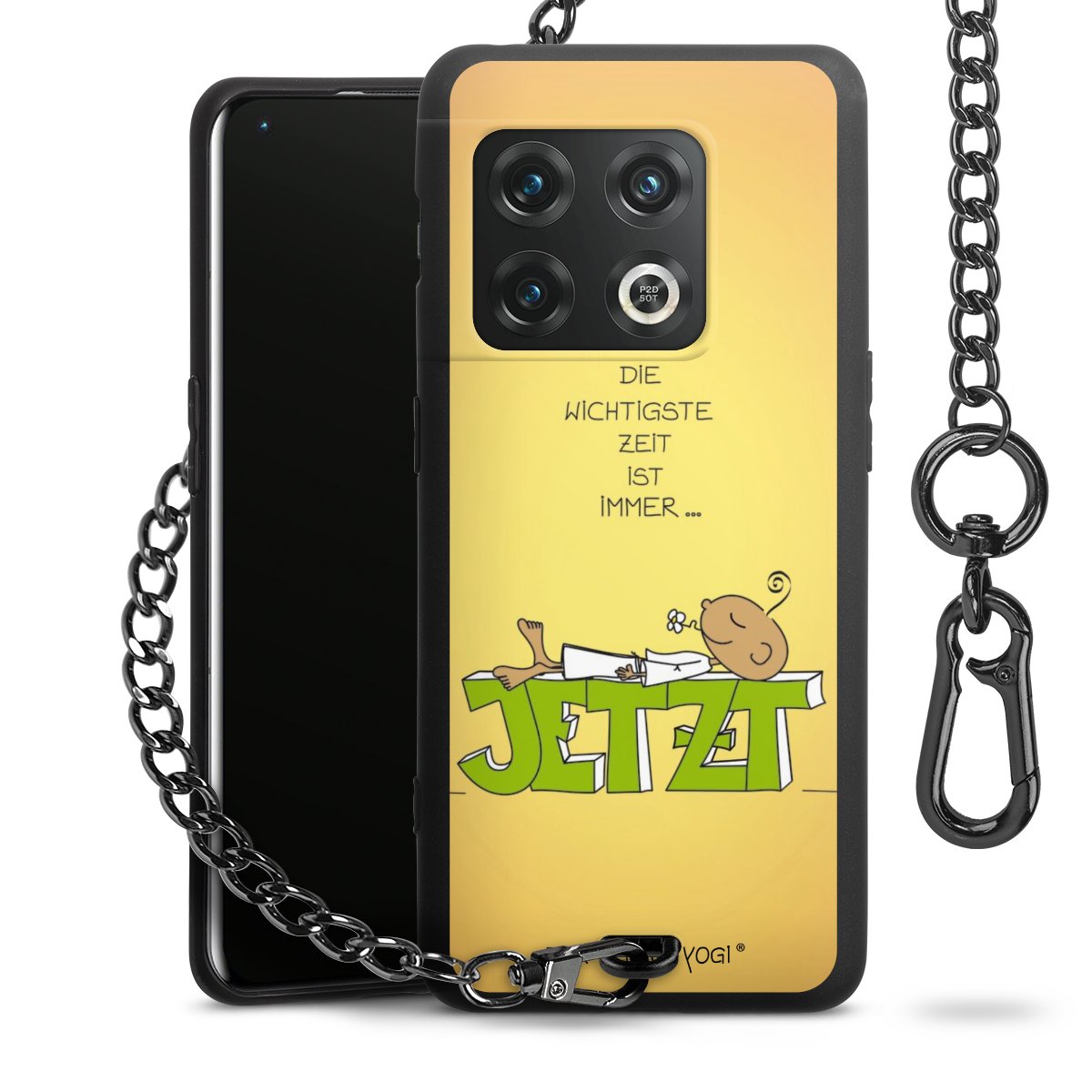 Die Handyhülle verfügt über eine mittig am unteren Rand platzierte Öse, an der die Metallkette stabil befestigt ist. Bestelle die Hülle einfach für Dein Smartphone-Modell, dann passt sie wie angegossen und Du brauchst sie bloß einmal anzudrücken. Handy in die Tasche, Karabiner an den Hosenbund – schon kann die Party starten.