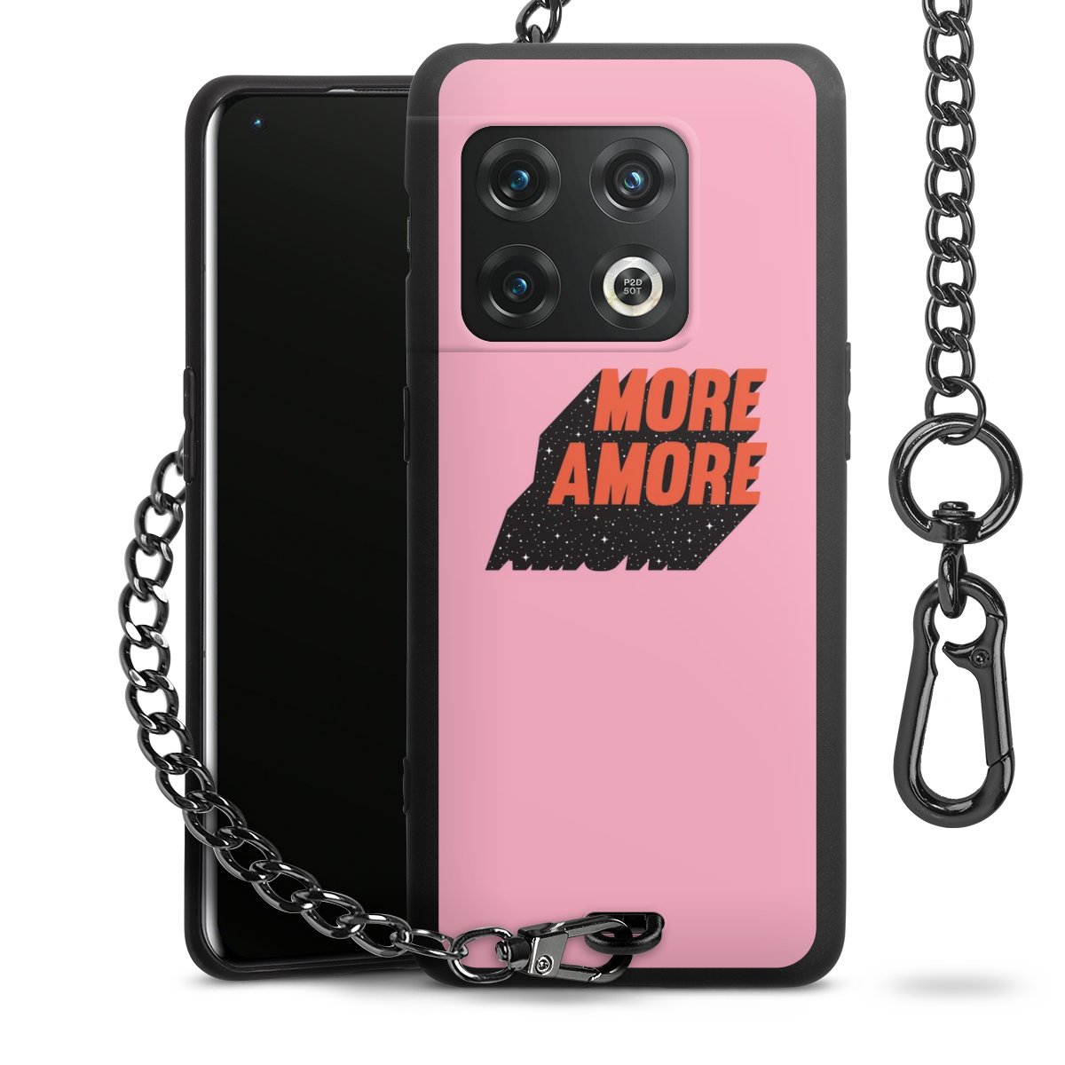 • Mattschwarze Handyhülle mit Metallkette