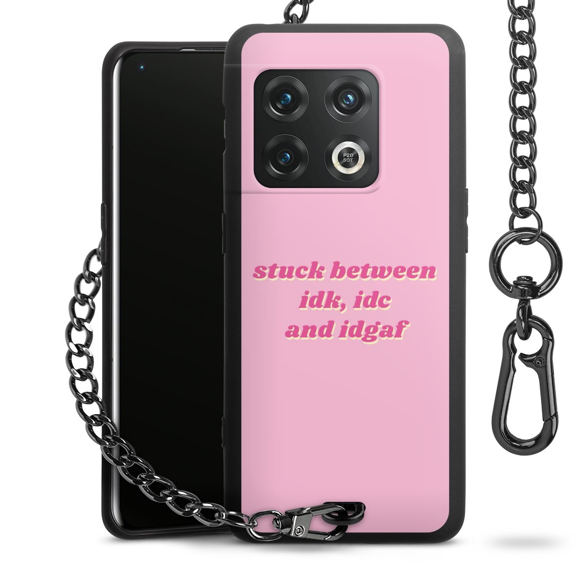 - Mattschwarze Handyhülle mit Metallkette