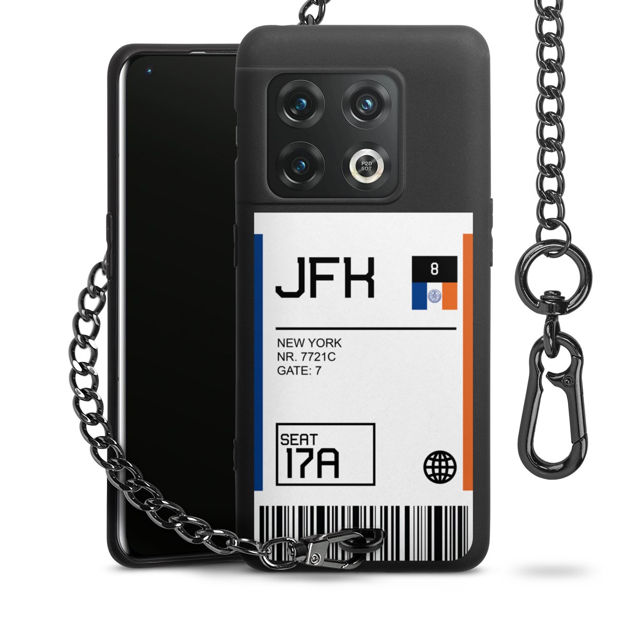 - Mattschwarze Handyhülle mit Metallkette