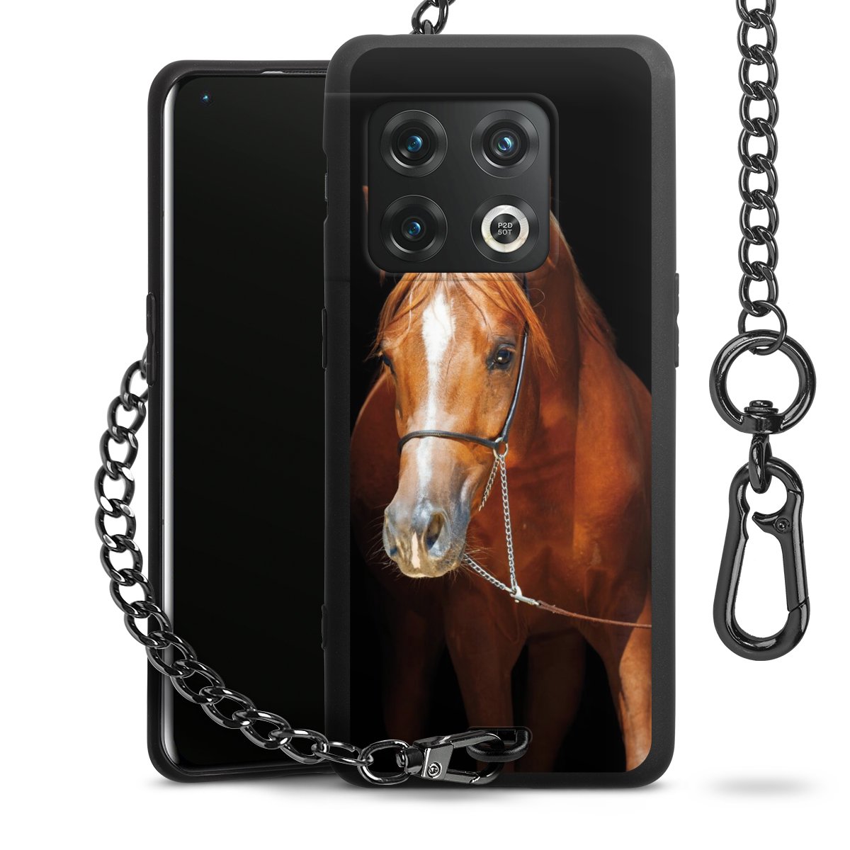 • Mattschwarze Handyhülle mit Metallkette
