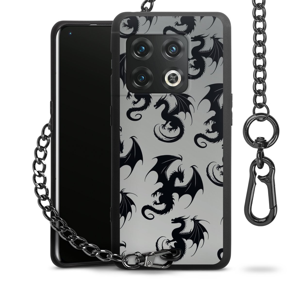 Die mattschwarze Silikon-Handyhülle besteht aus robustem TPU (thermoplastisches Polyurethan). Sie ist flexibel und schützt Dein Smartphone vor Stößen und Kratzern. Die Kette sowie der Karabinerhaken sind aus Metall in Gunmetal-Optik gefertigt. Für dieses Produkt kommen ausschließlich TÜV-geprüfte Materialien zum Einsatz.
