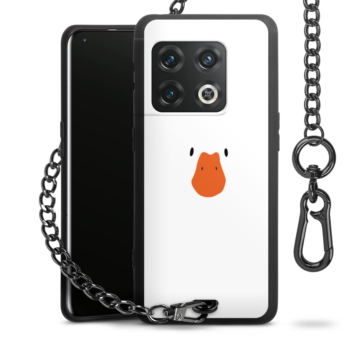 Die Handyhülle verfügt über eine mittig am unteren Rand platzierte Öse, an der die Metallkette stabil befestigt ist. Bestelle die Hülle einfach für Dein Smartphone-Modell, dann passt sie wie angegossen und Du brauchst sie bloß einmal anzudrücken. Handy in die Tasche, Karabiner an den Hosenbund – schon kann die Party starten.