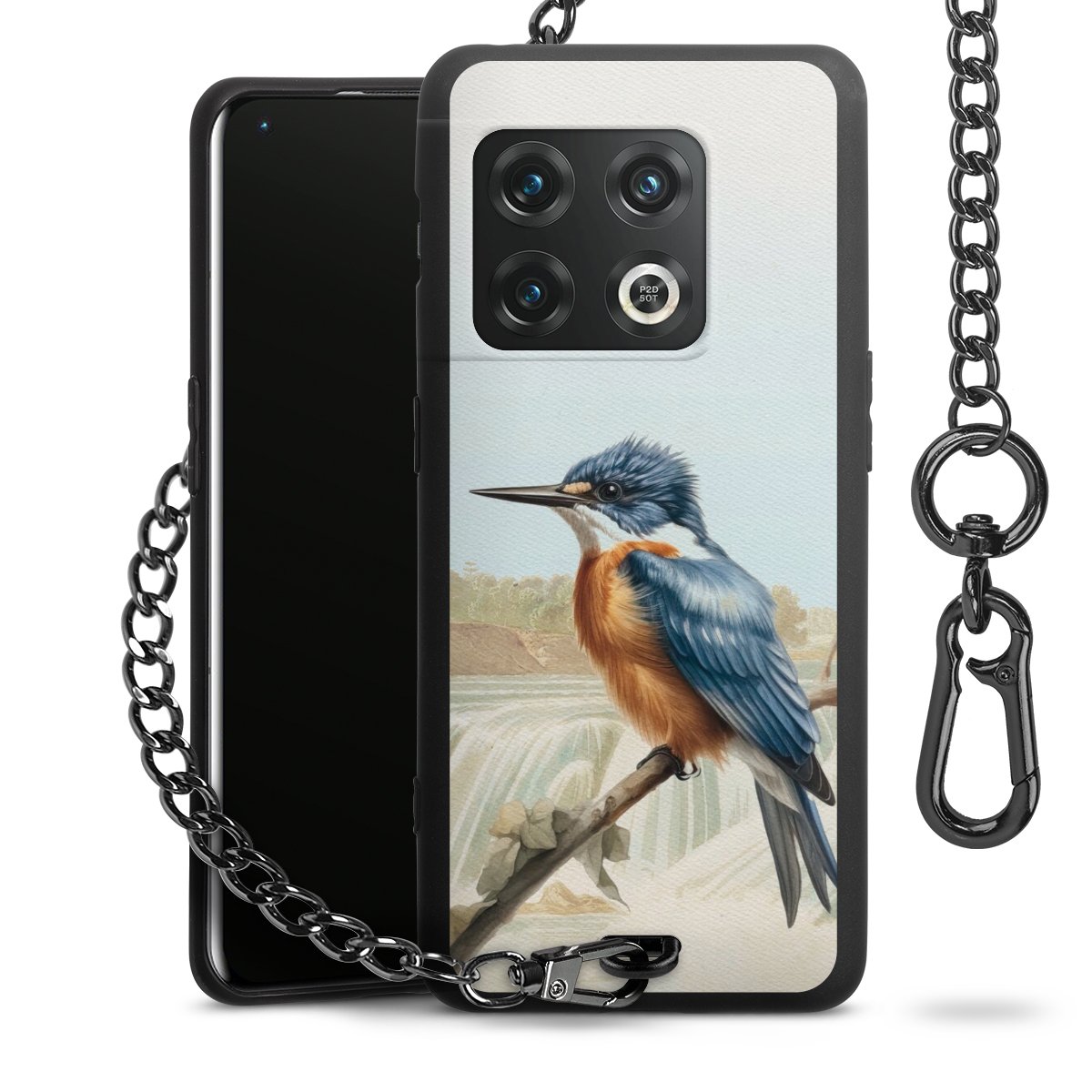 • Mattschwarze Handyhülle mit Metallkette