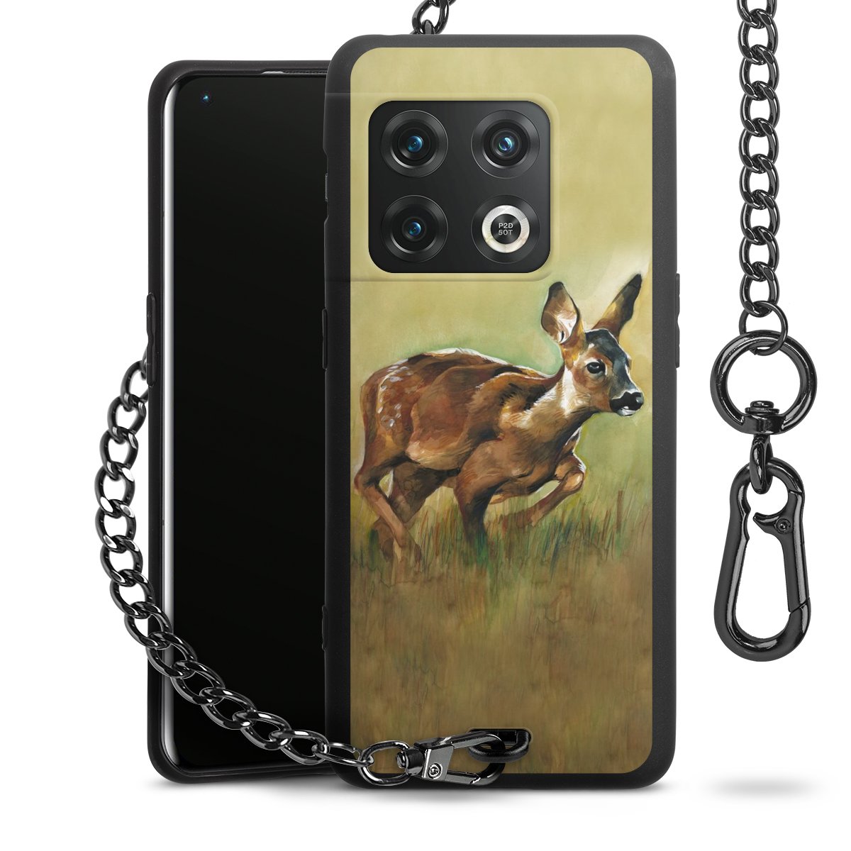 Die Handyhülle verfügt über eine mittig am unteren Rand platzierte Öse, an der die Metallkette stabil befestigt ist. Bestelle die Hülle einfach für Dein Smartphone-Modell, dann passt sie wie angegossen und Du brauchst sie bloß einmal anzudrücken. Handy in die Tasche, Karabiner an den Hosenbund – schon kann die Party starten.