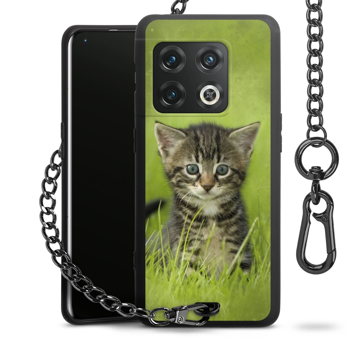 - Mattschwarze Handyhülle mit Metallkette
