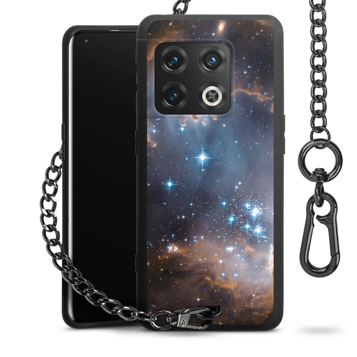 - Mattschwarze Handyhülle mit Metallkette