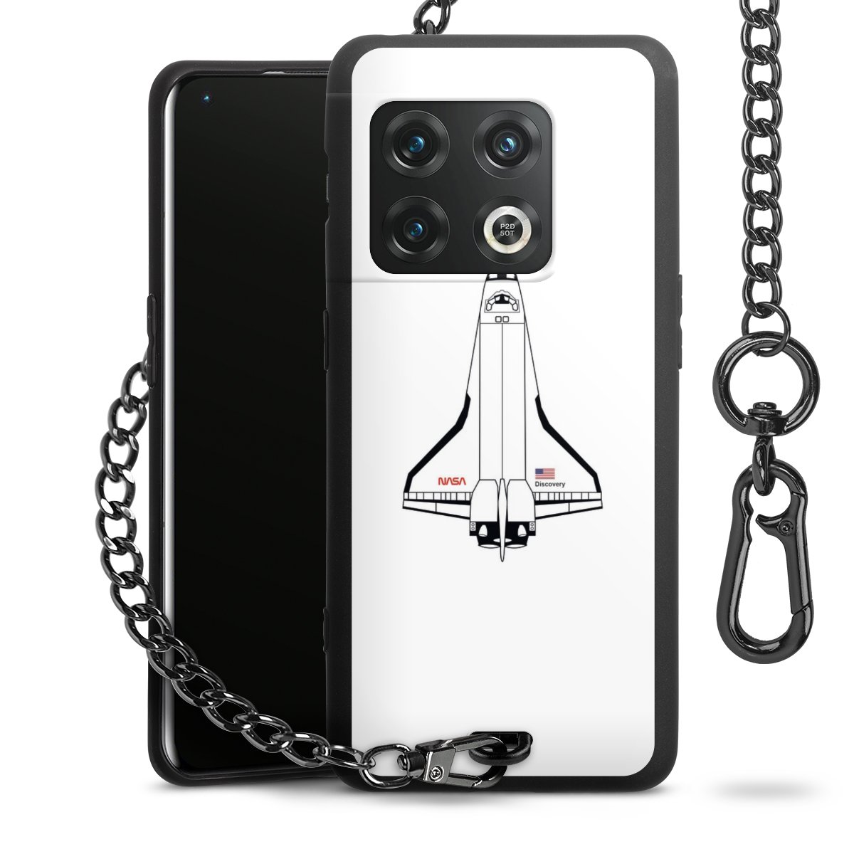 - Mattschwarze Handyhülle mit Metallkette