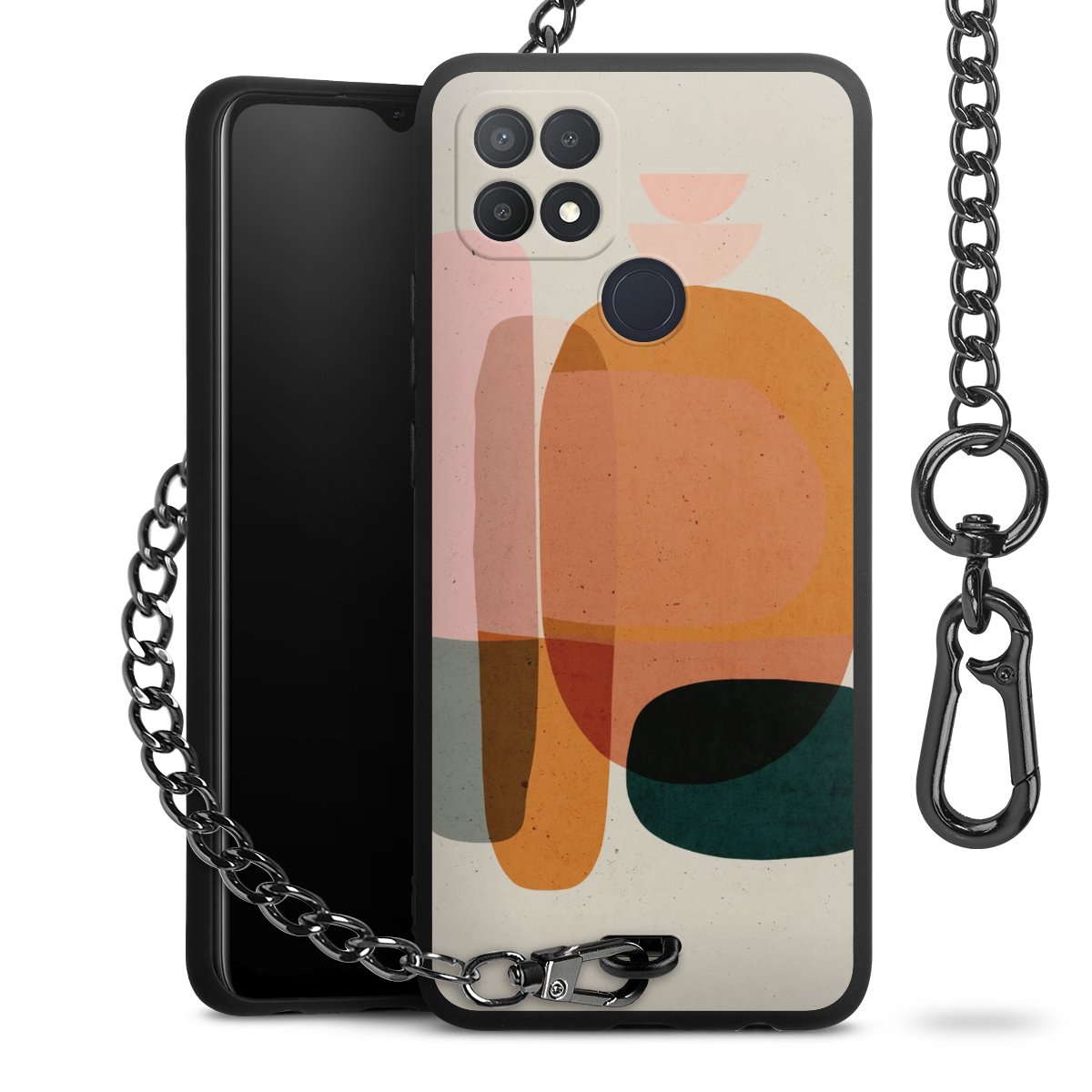 • Mattschwarze Handyhülle mit Metallkette