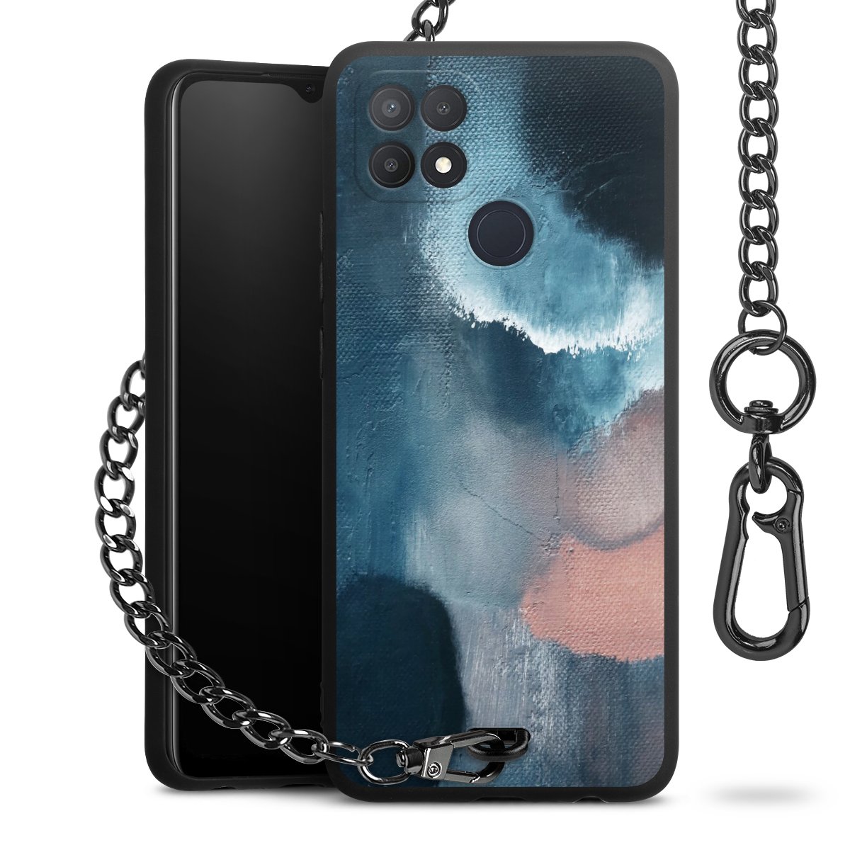 • Mattschwarze Handyhülle mit Metallkette