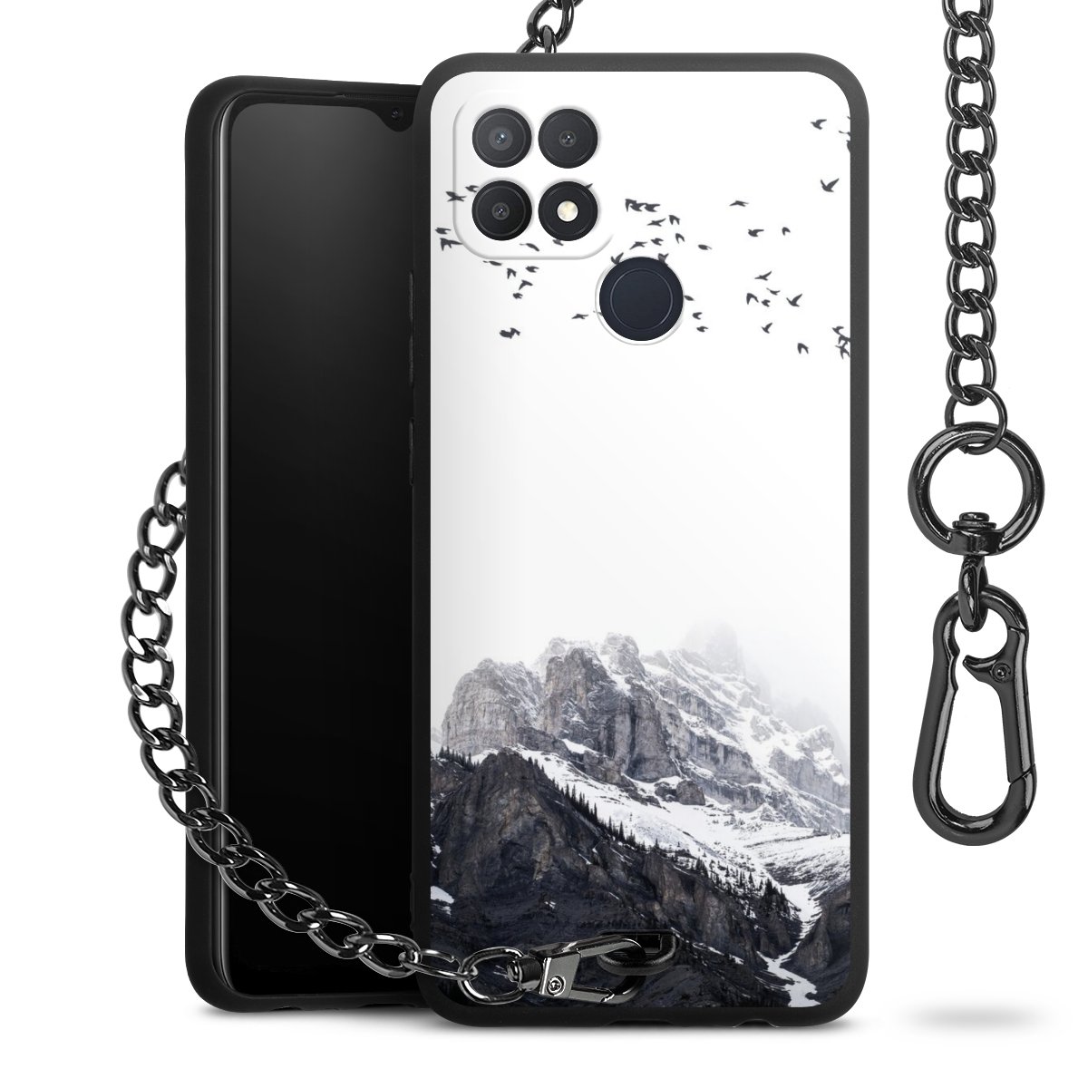 • Mattschwarze Handyhülle mit Metallkette