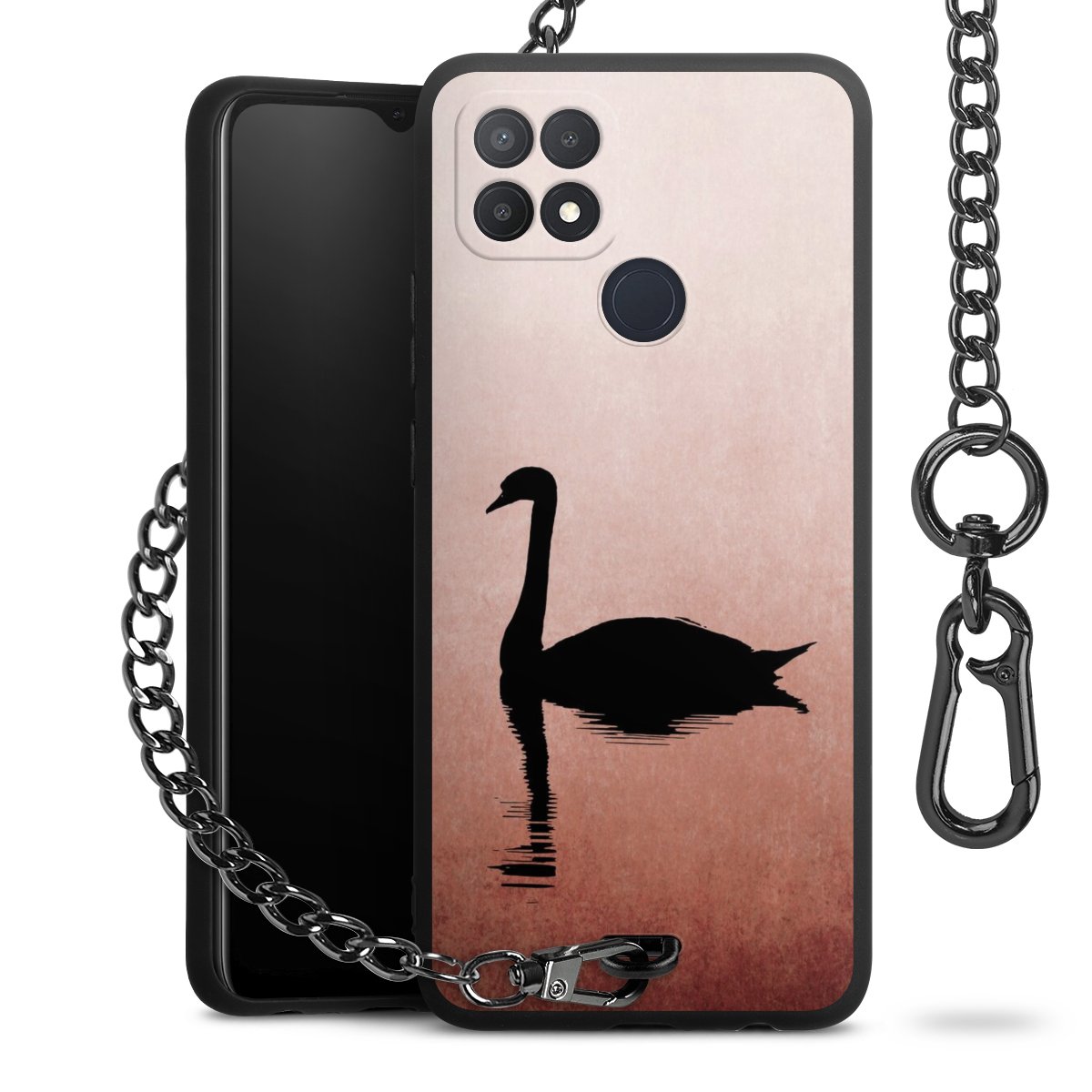 • Mattschwarze Handyhülle mit Metallkette