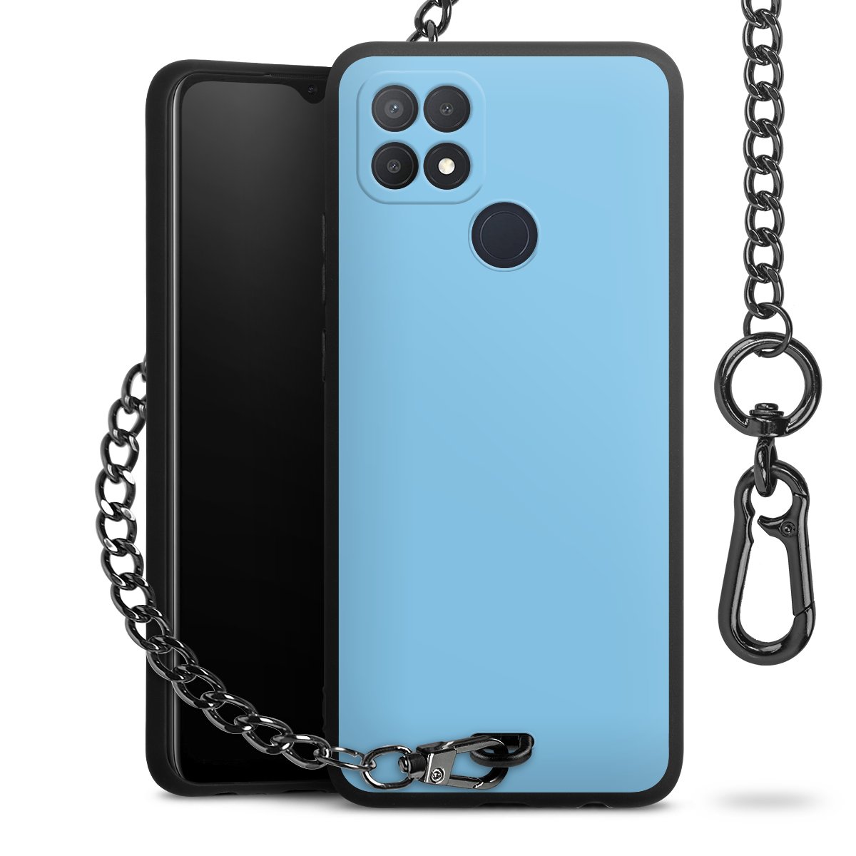 • Mattschwarze Handyhülle mit Metallkette