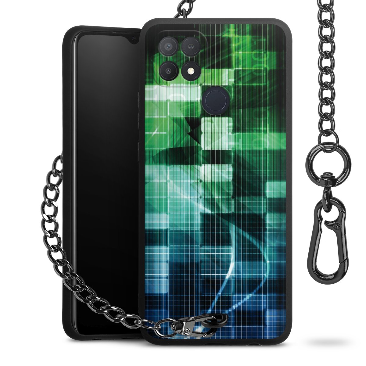 - Mattschwarze Handyhülle mit Metallkette