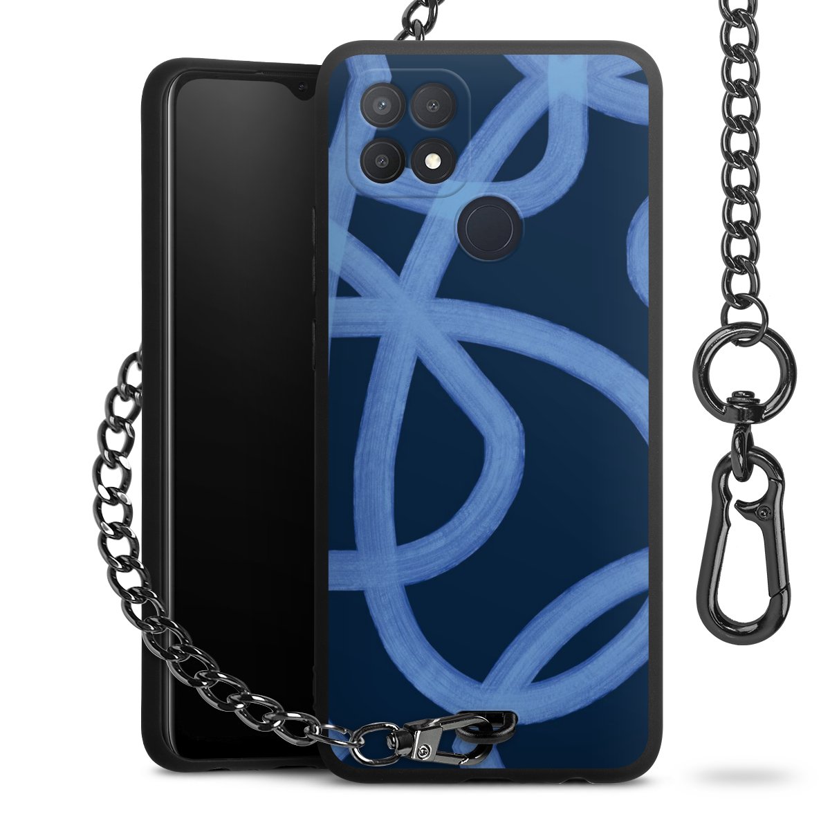 • Mattschwarze Handyhülle mit Metallkette