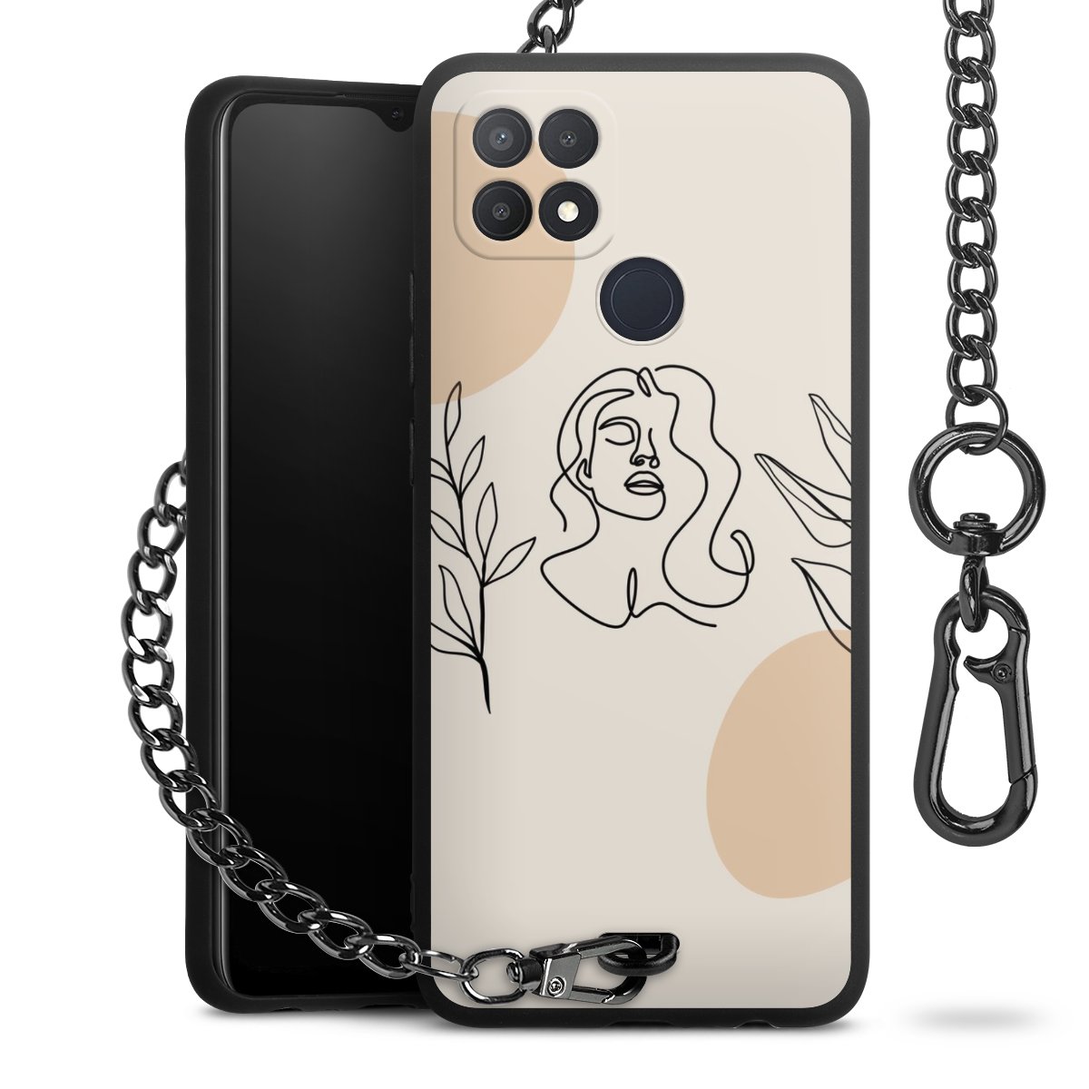 - Mattschwarze Handyhülle mit Metallkette