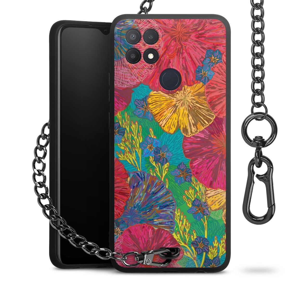 • Mattschwarze Handyhülle mit Metallkette