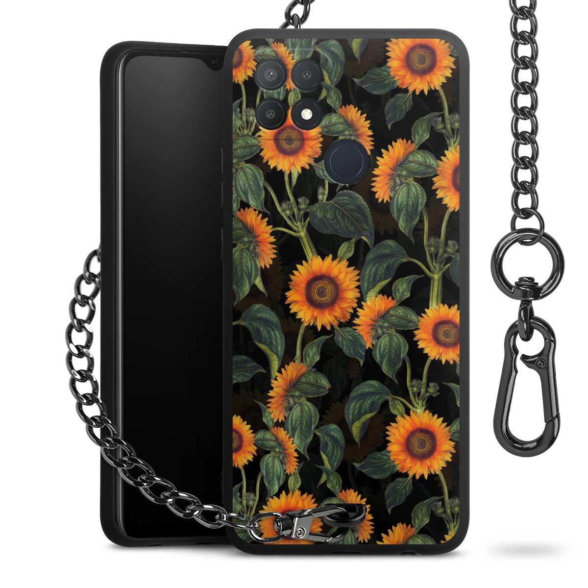 • Mattschwarze Handyhülle mit Metallkette