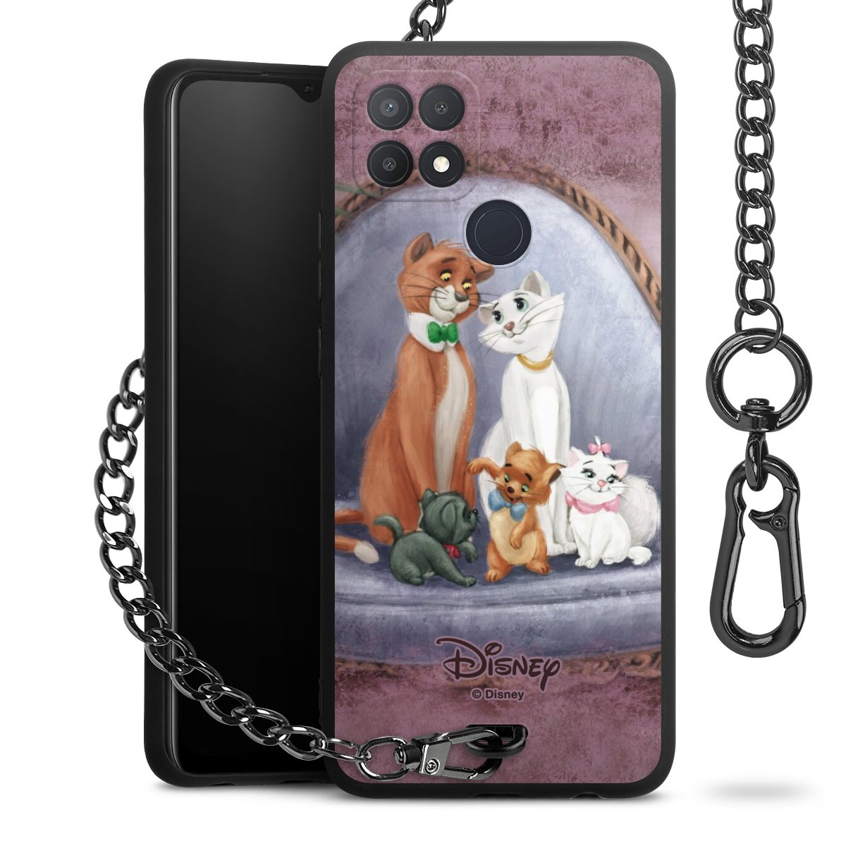 • Mattschwarze Handyhülle mit Metallkette