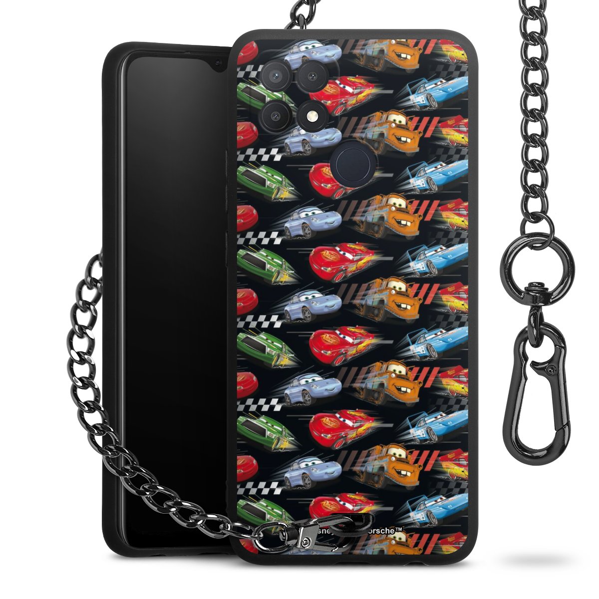 - Mattschwarze Handyhülle mit Metallkette