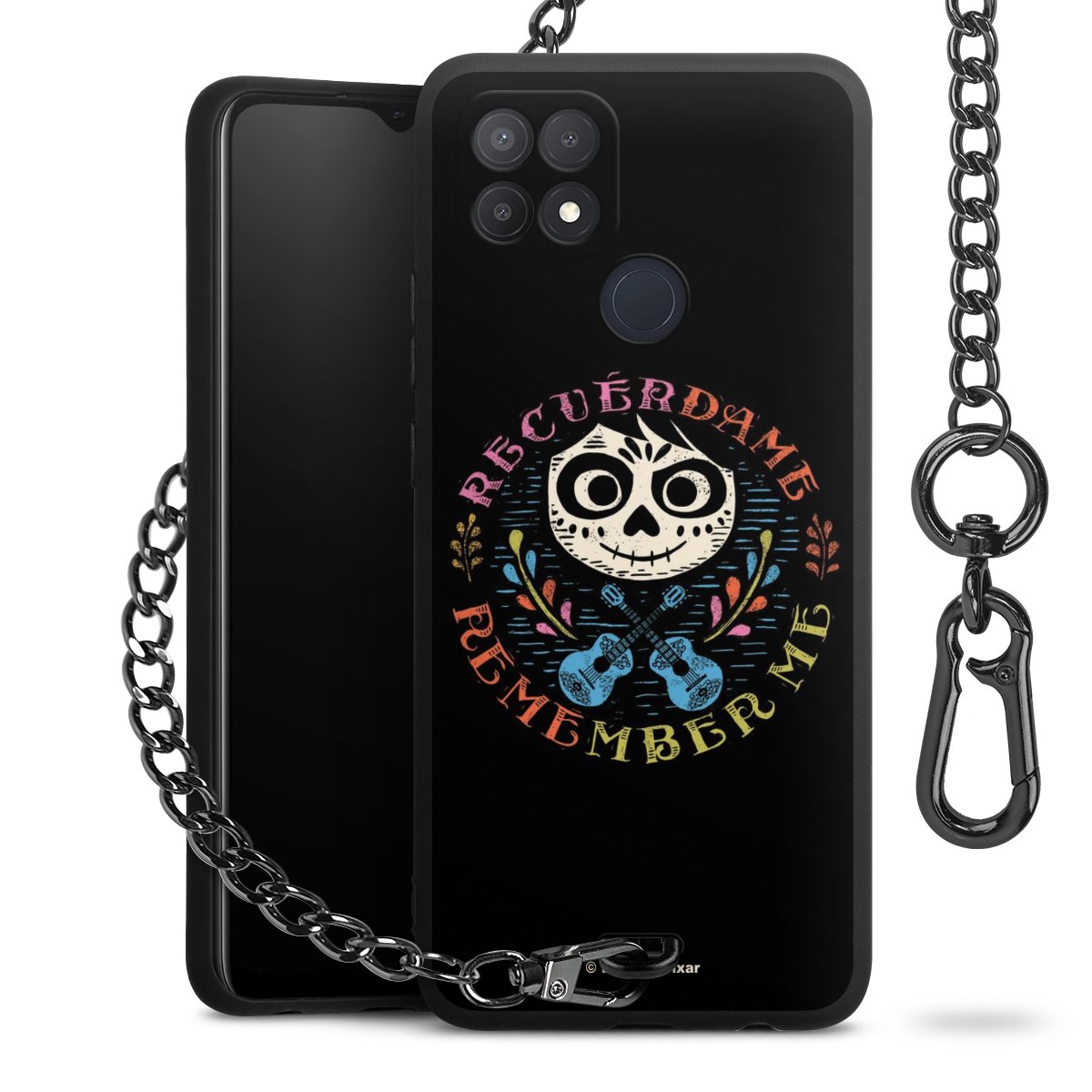 - Mattschwarze Handyhülle mit Metallkette