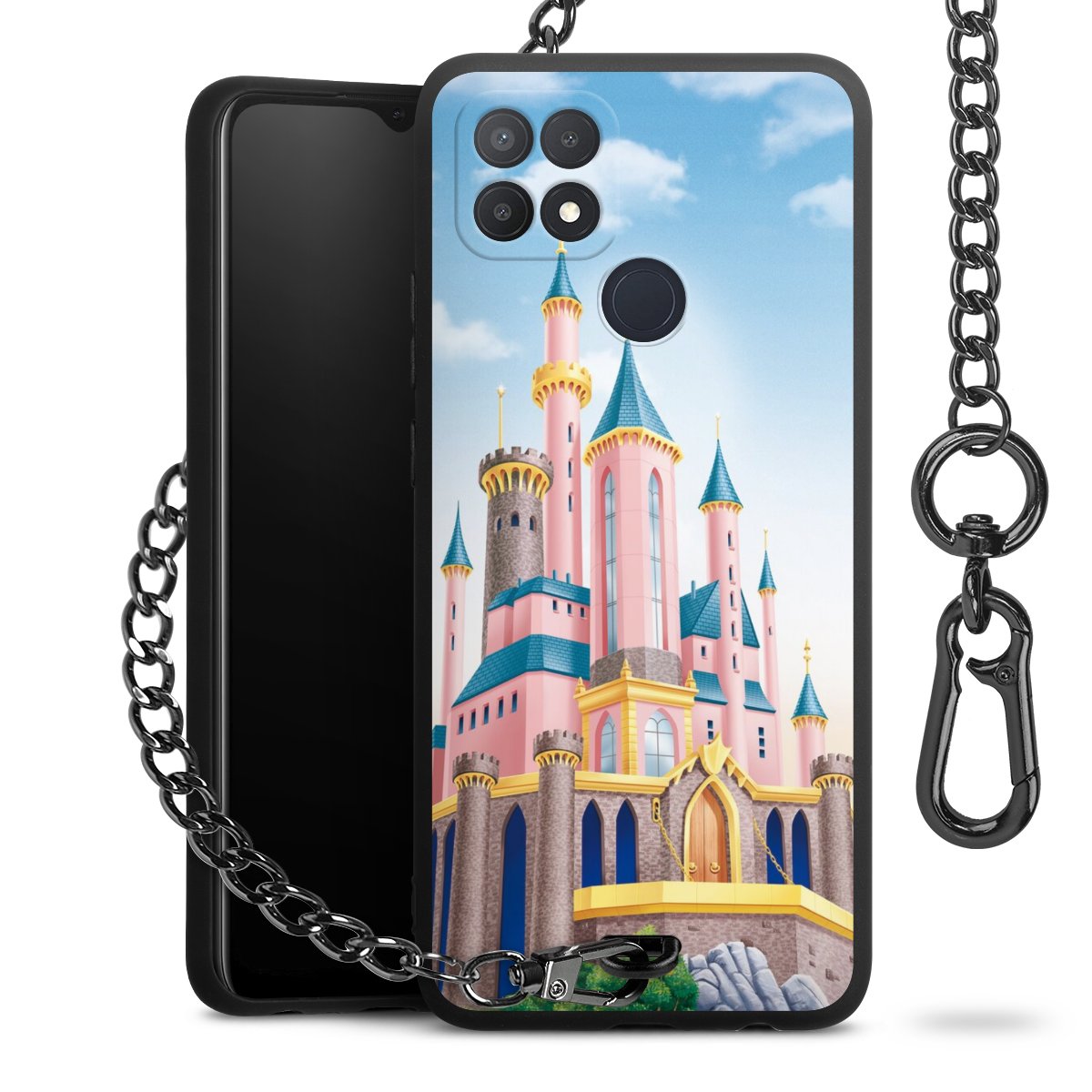 • Mattschwarze Handyhülle mit Metallkette