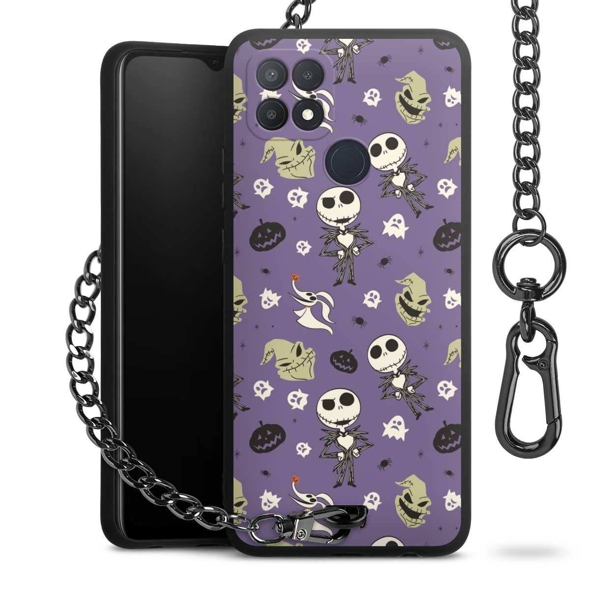 • Mattschwarze Handyhülle mit Metallkette