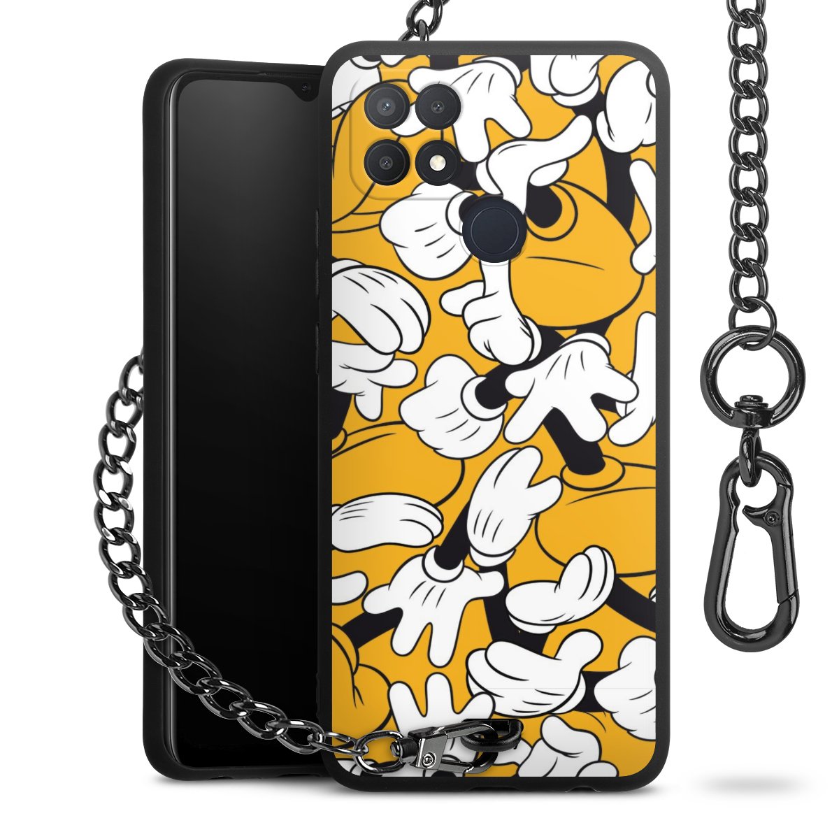 • Mattschwarze Handyhülle mit Metallkette