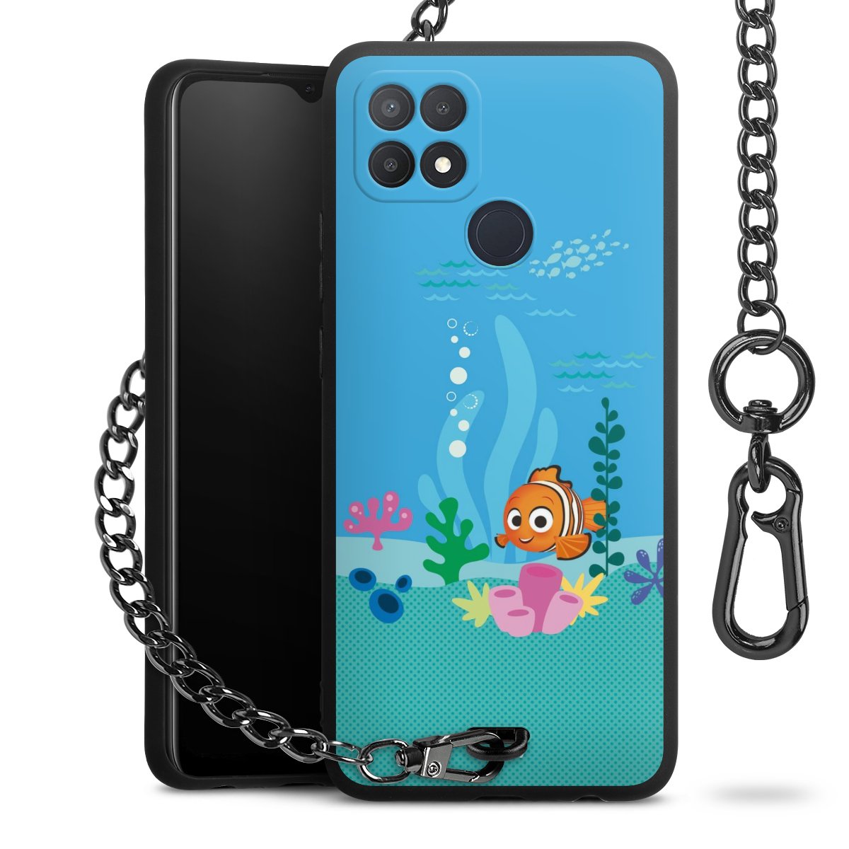 - Mattschwarze Handyhülle mit Metallkette