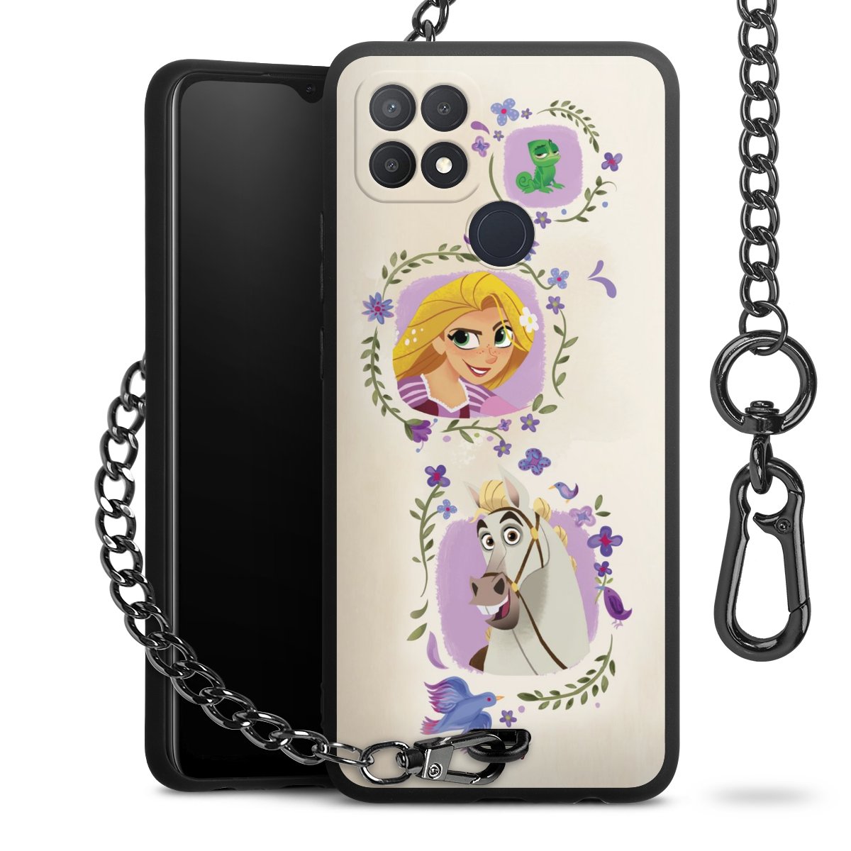 • Mattschwarze Handyhülle mit Metallkette