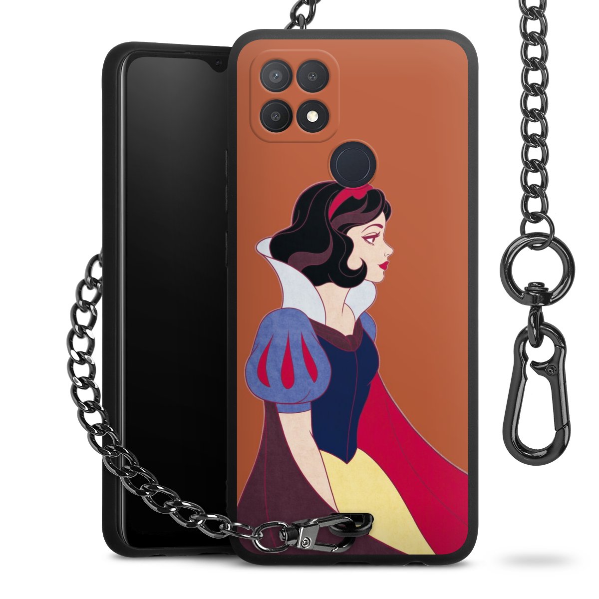 • Mattschwarze Handyhülle mit Metallkette