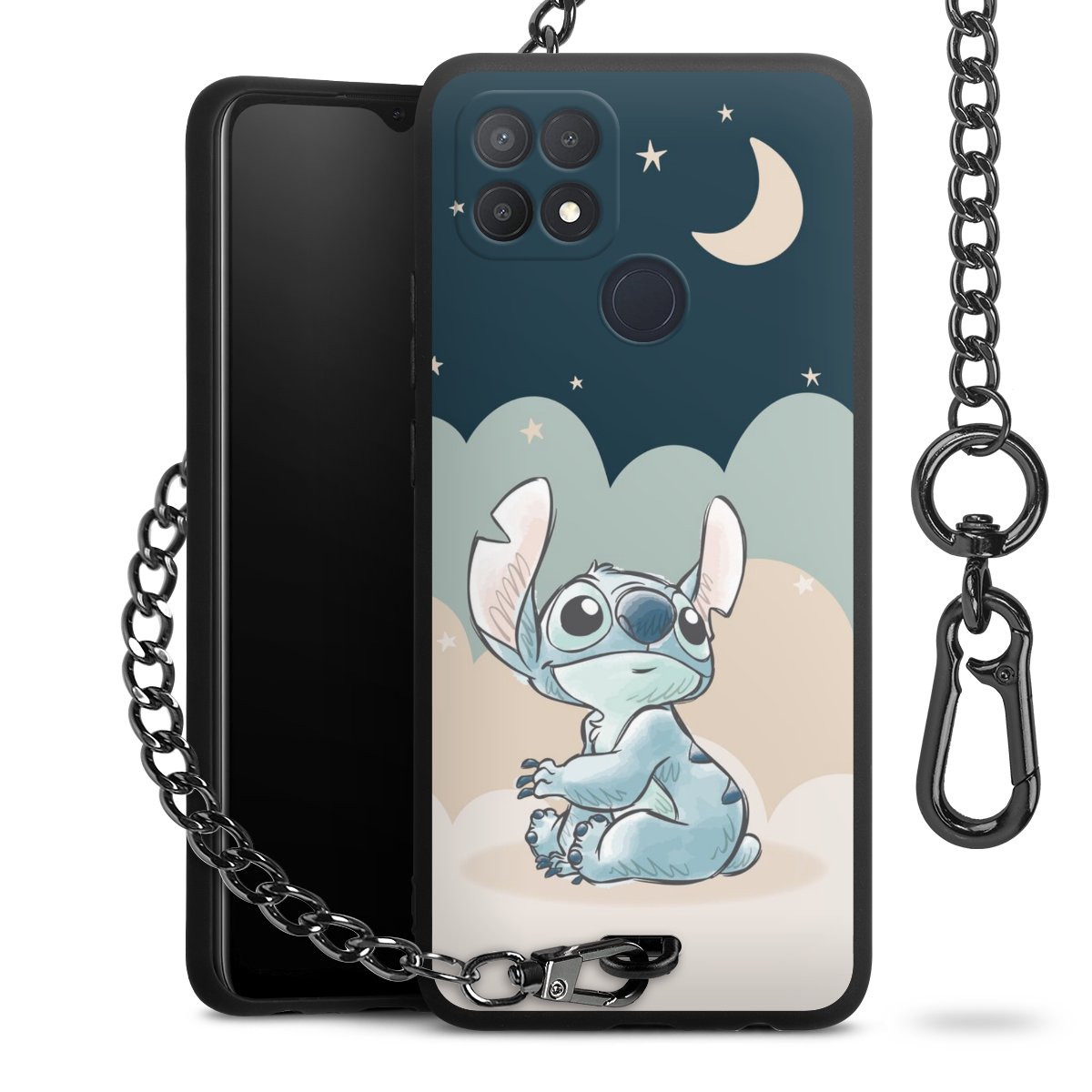 Die Handyhülle verfügt über eine mittig am unteren Rand platzierte Öse, an der die Metallkette stabil befestigt ist. Bestelle die Hülle einfach für Dein Smartphone-Modell, dann passt sie wie angegossen und Du brauchst sie bloß einmal anzudrücken. Handy in die Tasche, Karabiner an den Hosenbund – schon kann die Party starten.