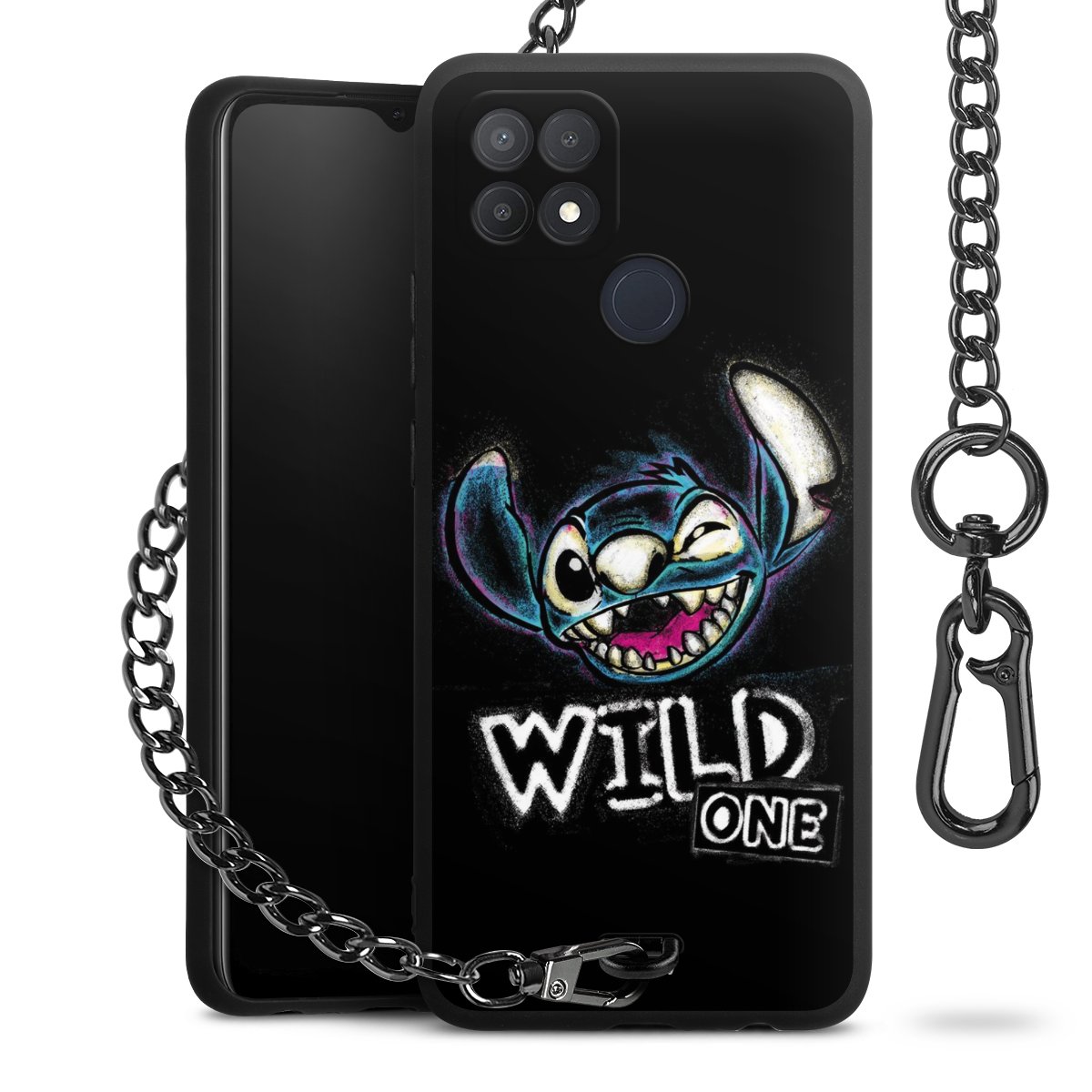 Die Handyhülle verfügt über eine mittig am unteren Rand platzierte Öse, an der die Metallkette stabil befestigt ist. Bestelle die Hülle einfach für Dein Smartphone-Modell, dann passt sie wie angegossen und Du brauchst sie bloß einmal anzudrücken. Handy in die Tasche, Karabiner an den Hosenbund – schon kann die Party starten.