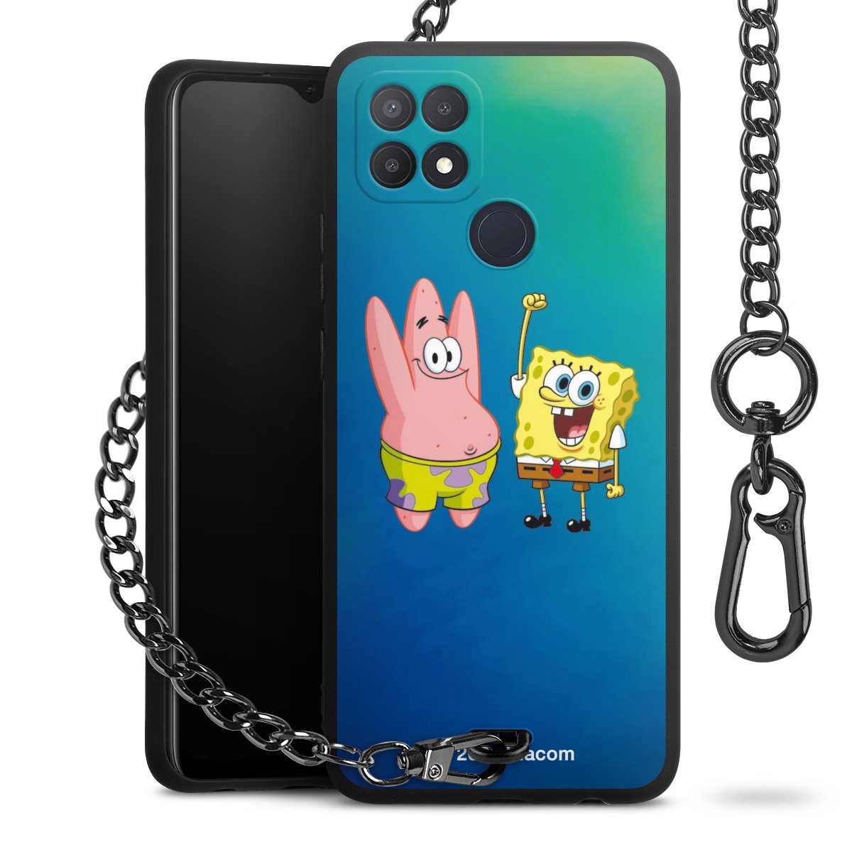 Die Handyhülle verfügt über eine mittig am unteren Rand platzierte Öse, an der die Metallkette stabil befestigt ist. Bestelle die Hülle einfach für Dein Smartphone-Modell, dann passt sie wie angegossen und Du brauchst sie bloß einmal anzudrücken. Handy in die Tasche, Karabiner an den Hosenbund – schon kann die Party starten.
