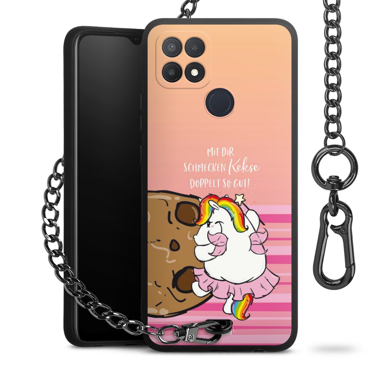 Die mattschwarze Silikon-Handyhülle besteht aus robustem TPU (thermoplastisches Polyurethan). Sie ist flexibel und schützt Dein Smartphone vor Stößen und Kratzern. Die Kette sowie der Karabinerhaken sind aus Metall in Gunmetal-Optik gefertigt. Für dieses Produkt kommen ausschließlich TÜV-geprüfte Materialien zum Einsatz.