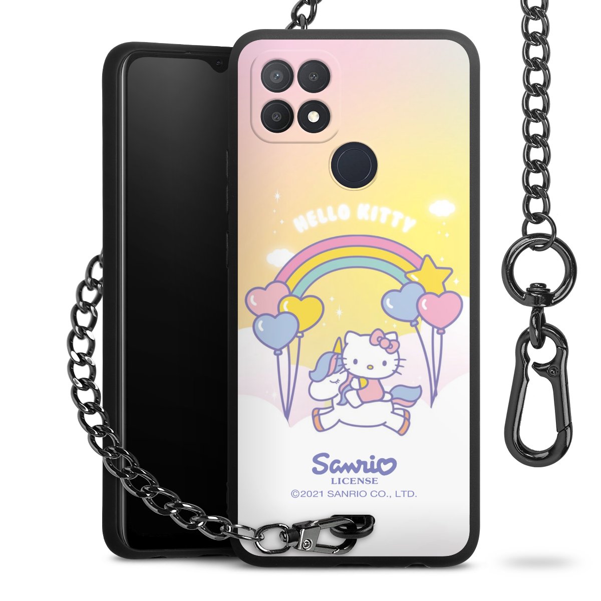 Die mattschwarze Silikon-Handyhülle besteht aus robustem TPU (thermoplastisches Polyurethan). Sie ist flexibel und schützt Dein Smartphone vor Stößen und Kratzern. Die Kette sowie der Karabinerhaken sind aus Metall in Gunmetal-Optik gefertigt. Für dieses Produkt kommen ausschließlich TÜV-geprüfte Materialien zum Einsatz.