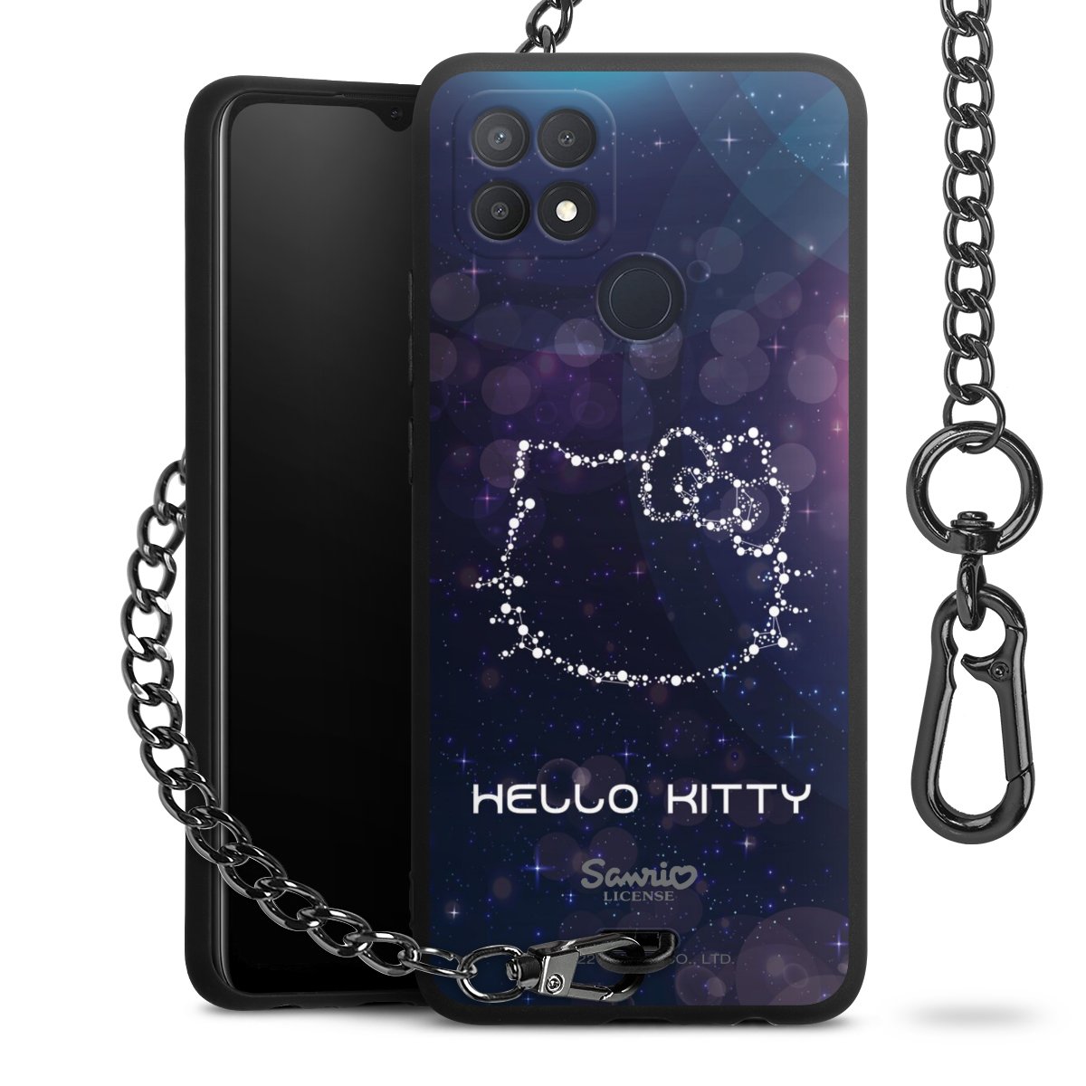 Die Handyhülle verfügt über eine mittig am unteren Rand platzierte Öse, an der die Metallkette stabil befestigt ist. Bestelle die Hülle einfach für Dein Smartphone-Modell, dann passt sie wie angegossen und Du brauchst sie bloß einmal anzudrücken. Handy in die Tasche, Karabiner an den Hosenbund – schon kann die Party starten.