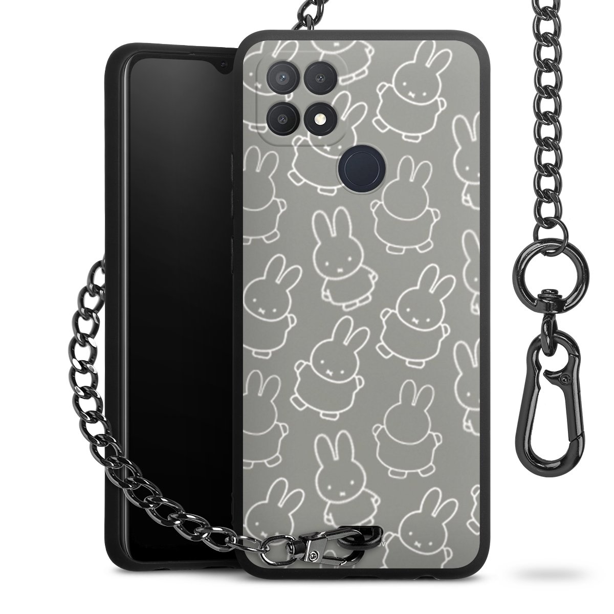 Die mattschwarze Silikon-Handyhülle besteht aus robustem TPU (thermoplastisches Polyurethan). Sie ist flexibel und schützt Dein Smartphone vor Stößen und Kratzern. Die Kette sowie der Karabinerhaken sind aus Metall in Gunmetal-Optik gefertigt. Für dieses Produkt kommen ausschließlich TÜV-geprüfte Materialien zum Einsatz.