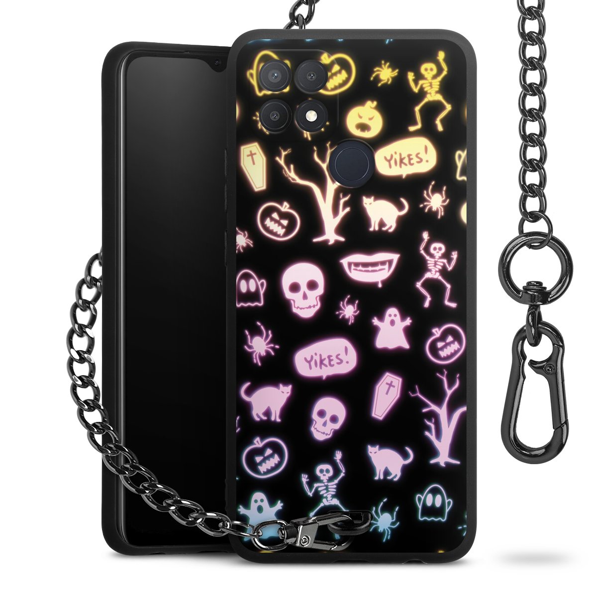 • Mattschwarze Handyhülle mit Metallkette