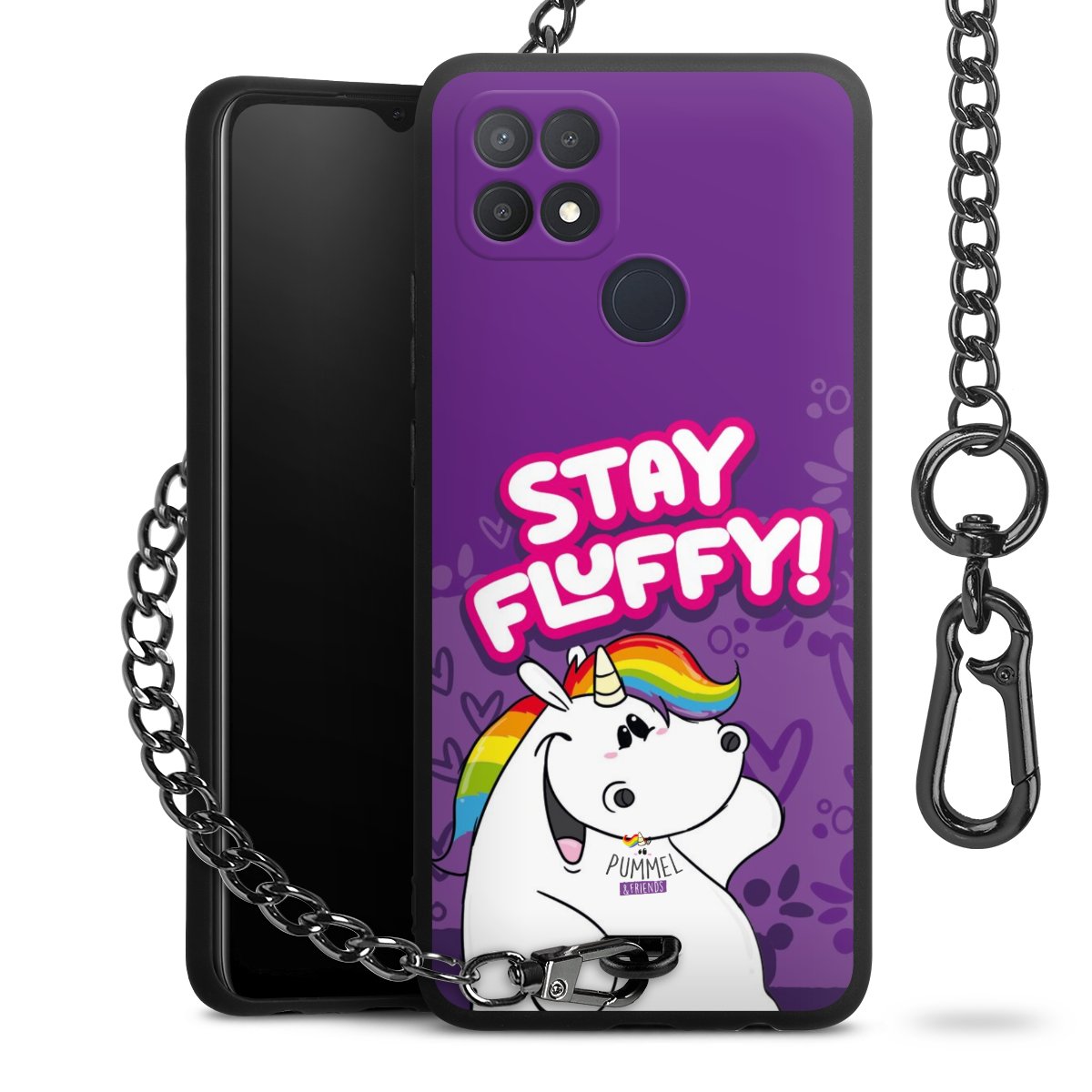 Die mattschwarze Silikon-Handyhülle besteht aus robustem TPU (thermoplastisches Polyurethan). Sie ist flexibel und schützt Dein Smartphone vor Stößen und Kratzern. Die Kette sowie der Karabinerhaken sind aus Metall in Gunmetal-Optik gefertigt. Für dieses Produkt kommen ausschließlich TÜV-geprüfte Materialien zum Einsatz.