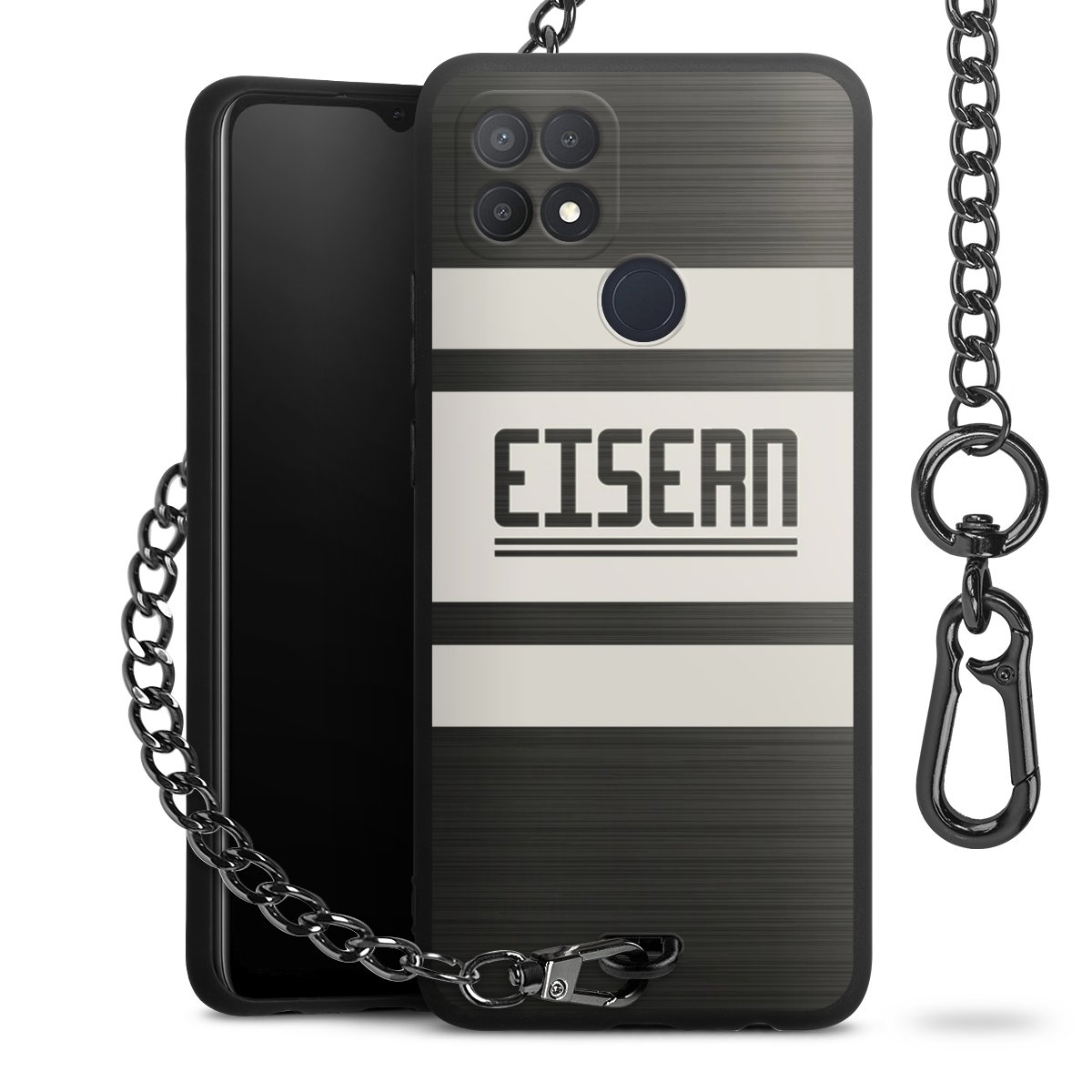 • Mattschwarze Handyhülle mit Metallkette